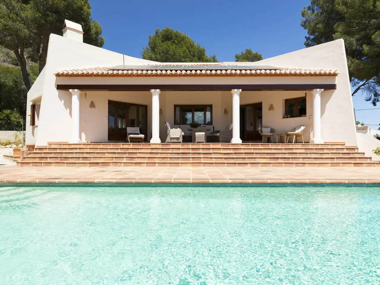 This elegant villa located in the coveted Montgó area of Jávea, Alicante, combines comfort and sustainability in a privileged natural setting. The home is spread over one floor and features three spacious bedrooms, one with an en-suite bathroom and a dressing room, ensuring comfort and functionality. It also has two additional full bathrooms and a guest toilet. The spacious living-dining room and kitchen open onto the naya. The layout is designed to maximize natural light and garden views, creating a cozy and relaxing atmosphere. Among the notable features of this villa are the terraces, both covered and uncovered, perfect for enjoying the Mediterranean climate year-round. The property includes a carefully landscaped private garden, a private pool for cooling off on the hottest days, and a convenient carport for parking vehicles. It also features a laundry room for added functionality. The villa is in good condition and equipped with solar panels, reflecting a commitment to sustainability and energy efficiency. Its mountainside location offers spectacular views and proximity to golf courses, making it an ideal choice for nature and sports lovers. This property is a unique opportunity for those seeking a home that combines elegance, comfort, and respect for the environment.