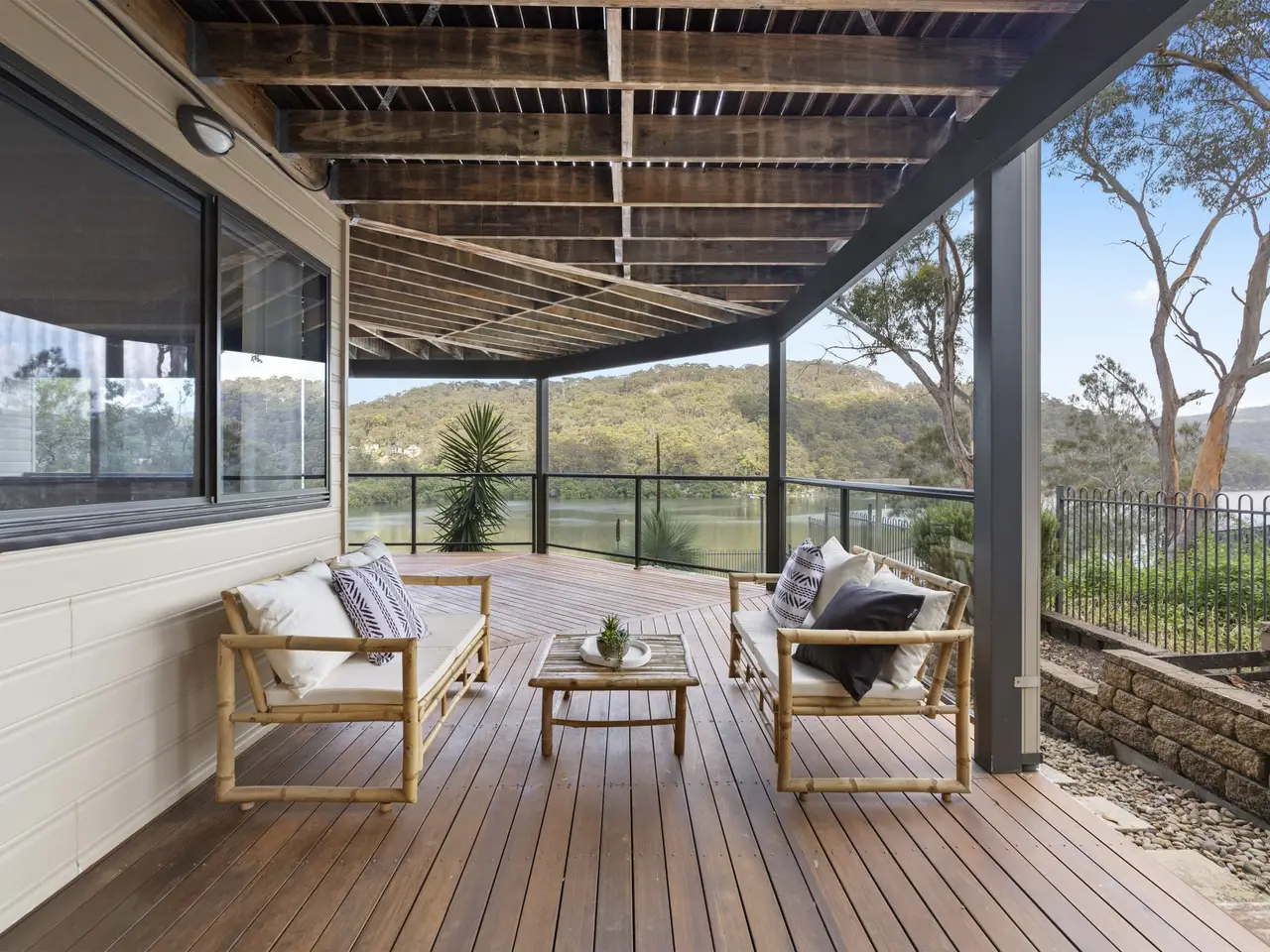 Embraced by 180-degree panoramas across Mooney Mooney Bay, this waterfront property is a visionary display of contemporary excellence. Resting under spectacular double height ceilings and masterfully designed so almost every room is framed by intimate water views, a fluid connection to the dual decking creates the perfect setting for entertaining. Undoubtedly one of the area's finest homes, from this sleepy seaside town it's an easy commute to the beautiful hamlet of Brooklyn with rail access to the Central Coast and Sydney's CBD. An exquisite lifestyle opportunity, a luxury holiday rental or stylish weekender, it delivers an idyllic haven of unparalleled sophistication. • Grand double entry leading to an expansive centrepiece living area • Gourmet entertainer's kitchen equipped with premium European appliances • The kitchen also includes an oversized butlers pantry with endless storage • Banks of glass and double height ceilings frame the uninterrupted water views • Luxury bedrooms, the master suite located on the main level for privacy • Downstairs bedrooms with private deck are ideal for teens and guests • Wraparound deck offering the perfect setting for alfresco waterfront dining • Home office or 4th double bedroom • Two deluxe bathrooms plus a powder room, the ensuite boasting water views • Hardwood floors, louvre windows and ceiling fans in all the bedrooms • Copious storage, oversized automatic double garage plus a two-car bay • There is plenty of under house storage and solar panels with a 6.5kw battery • Motorised gate entry and abundant space for your boat, caravan or trailer • Quiet cul-de-sac and just a short drive to Hawkesbury River train station • Walk to Mooney Mooney Club and only moments to Brooklyn village • Less than an hour commute into Sydney's CBD * Land Size: 1100sqm * Pest and Building Inspection Report Available Disclaimer: All information contained herein is gathered from sources we believe to be reliable. However we cannot guarantee its accuracy and interested persons should rely on their own enquiries.