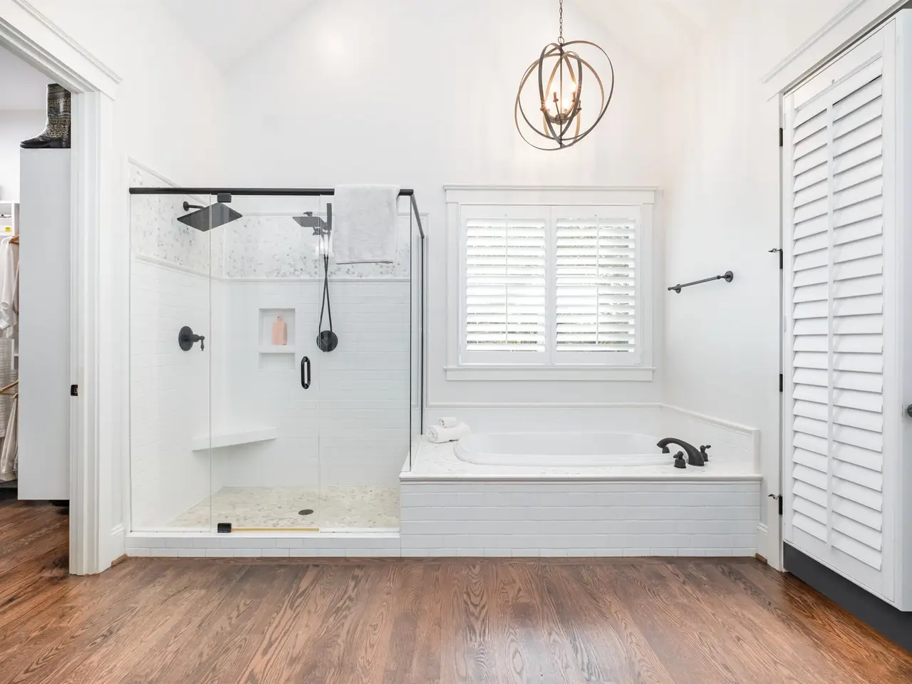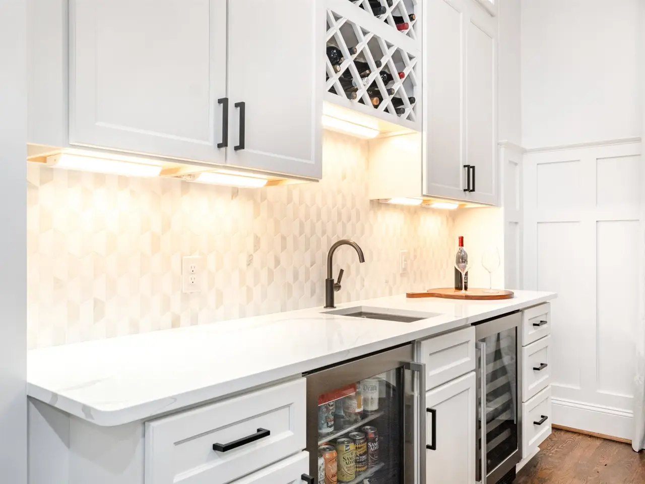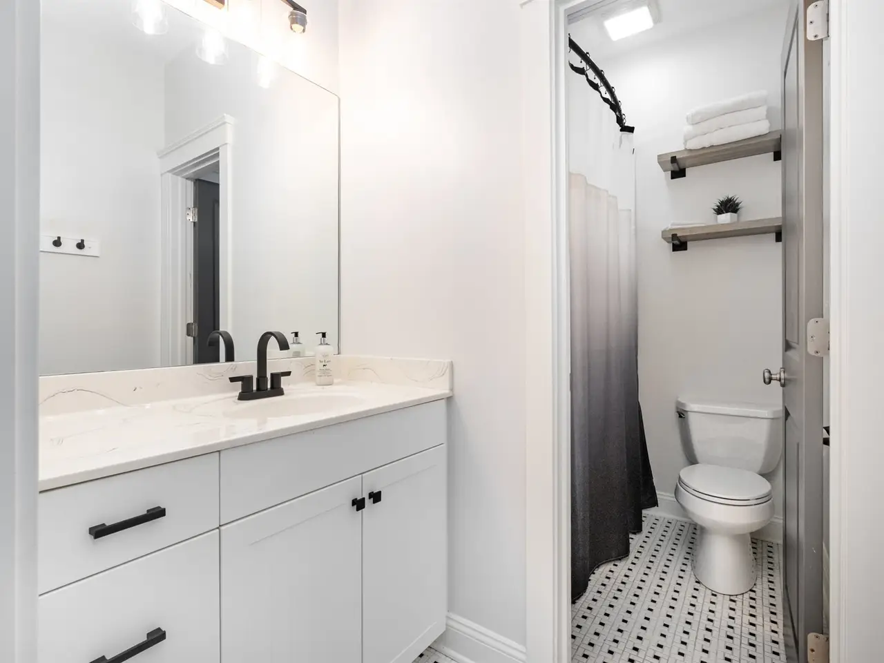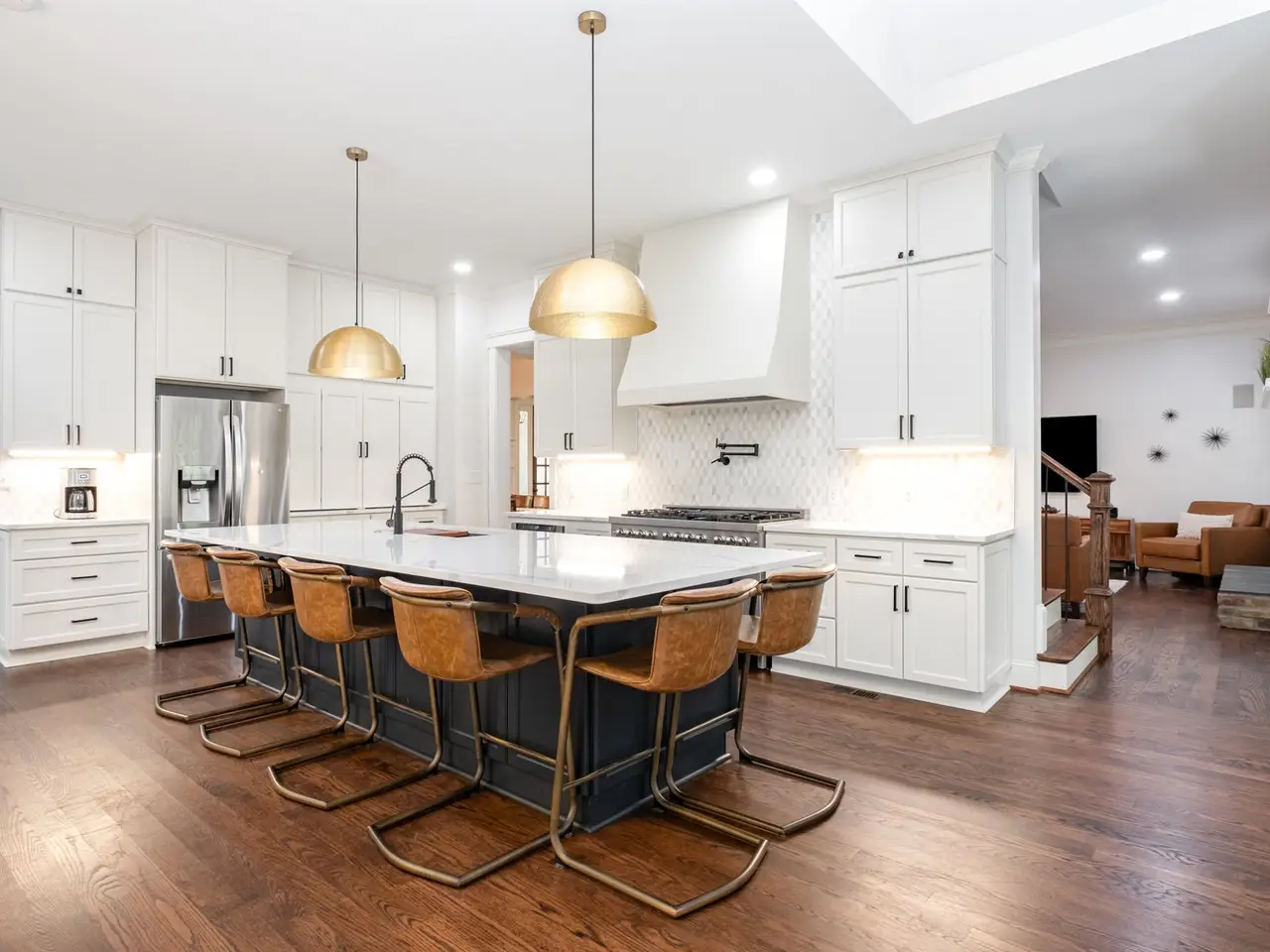 This modern luxury estate in The Farms offers true resort living on 2.1 private acres. Bordered by protected water-company land and community greenway, it's one of the most private homes in the neighborhood. The 4BR/3.5BA main home features soaring ceilings, hardwoods throughout (no carpet), designer lighting, neutral paint, and a newly built-in bar. The chef's kitchen includes a 48" gas range with double ovens, drawer microwave, and custom cabinet pantry. A double-sided fireplace opens to a screened deck overlooking the 40' heated saltwater pool with 7' depth, swim-up bar, and 8+ person spa. Outdoor features include stone walkways, bonfire pit. One of the few properties in The Farms with a carriage house, the detached carriage house offers a studio-style space with kitchenette, bath, washer/dryer hookups, and dual-zone mini-split that also temp-controls the garage. Main home has two HVAC units and two hot water tanks, plus a third serving the carriage house. Both garages feature lift-ready ceilings. The Farms amenities include clubhouse, pool, tennis, pickleball, soccer fields, holiday events, and boat/RV storage available. Lake Norman access is just minutes away.