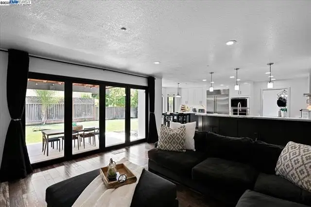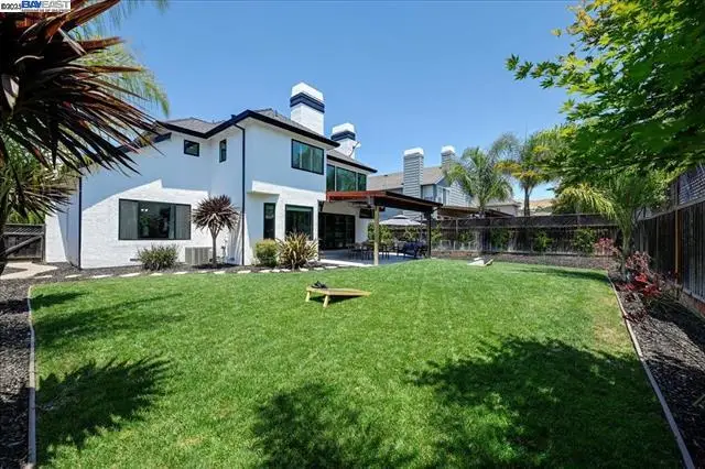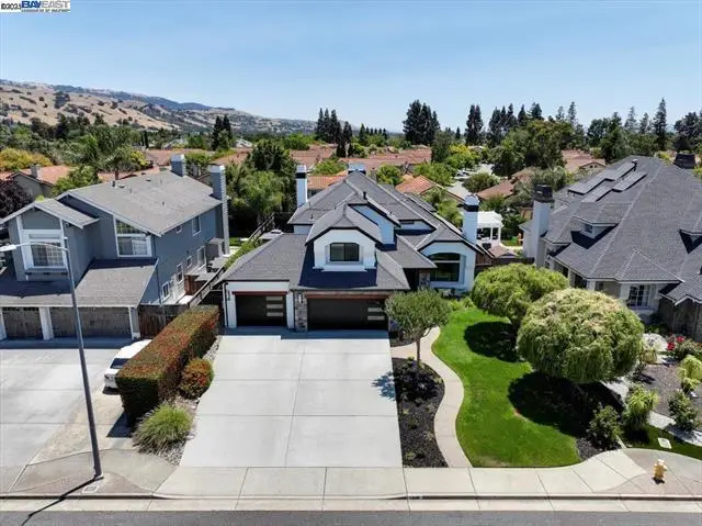 Nestled in a cul-de-sac within the NW quadrant of Morgan Hill. This updated home offers luxury, comfort, and style. Step inside to soaring ceilings and a custom glass staircase that sets the tone for this contemporary showpiece. The open floor plan features, a beautifully remodeled fireplace in the formal living room, with an adjacent formal dining area. Family room and kitchen are a true standout, equipped with Sub-Zero and Wolf appliances, porcelain countertops, full backsplash, and modern shaker cabinetry. Family room views of yard through sleek stacking doors that seamlessly blend indoor and outdoor living. 1 bedroom and a full bath located downstairs, the layout is ideal for guests or multi-generational living. Upstairs, you'll find three spacious bedrooms and two full baths. The primary suite includes a fireplace, walk-in closet, and a spa-inspired bath with a jetted tub surrounded by windows—ideal for relaxation. Enjoy year-round outdoor living in the beautifully landscaped backyard featuring a large covered patio, expansive lawn, custom planter boxes for gardening, and ample space for entertaining. Newer roof, New windows, water softener, Owned Solar System for energy efficiency. Just minutes to charming Downtown Morgan Hill, parks, and award-wining schools.