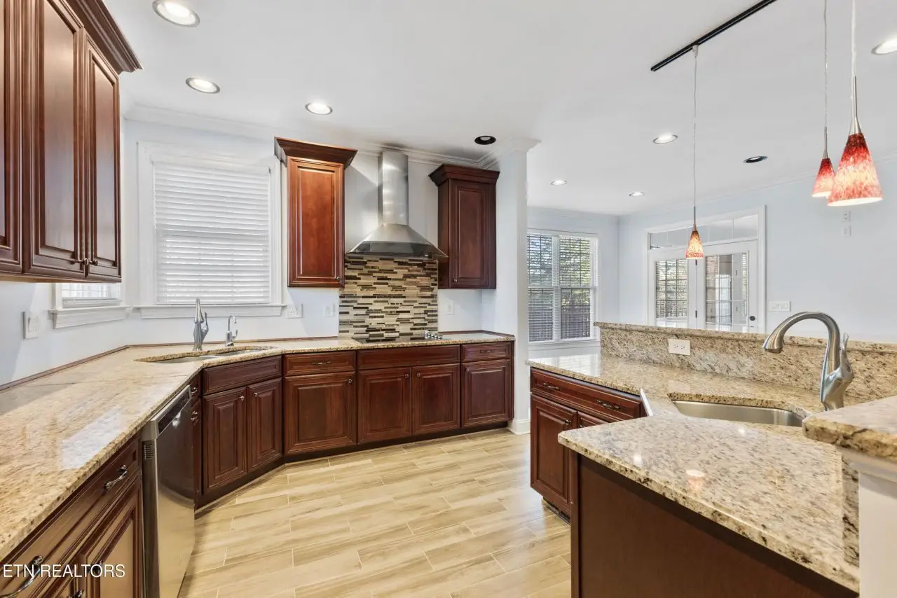Welcome to this stunning 5-bedroom, 5-bathroom home located in the highly sought-after Cedar Ridge Subdivision. Situated just 45 minutes from downtown Knoxville, this property combines the charm of a peaceful neighborhood with the convenience of nearby amenities. Enjoy the beautiful disc golf and dog park located right across the street and the proximity to Merchants Greene, Morristown's newest hub for commercial and medical services, just five minutes away. This home is built to last, featuring thick poured concrete walls, craftsman-style trims, and exceptional attention to detail. The interior boasts soaring ceilings, including a dramatic 20'+ foyer and main room, over 10' ceilings in the master suite, and high ceilings throughout. The thoughtfully designed master bathroom includes a porcelain-tiled shower with heated flooring for ultimate comfort. There is an additional master suite upstairs. All bedrooms feature newly installed hardwood flooring, adding elegance and durability. The walk-out basement is a showstopper, offering abundant natural light, a theater room, a covered patio, a full bar, and even a panic room for added security. Recent updates completed by the prior owners include luxury vinyl plank (LVP) flooring in the basement, fresh paint throughout, new porcelain tiles, modern appliances, and more. Additional upgrades include granite countertops throughout, stainless steel Whirlpool appliances, manifold cut-off Pex plumbing system, 2-year-old gas water heater, and HVAC system. This home is truly move-in ready, offering a rare combination of luxury, functionality, and modern updates. Don't miss your chance to own this exceptional property. Call today to schedule your private showing!