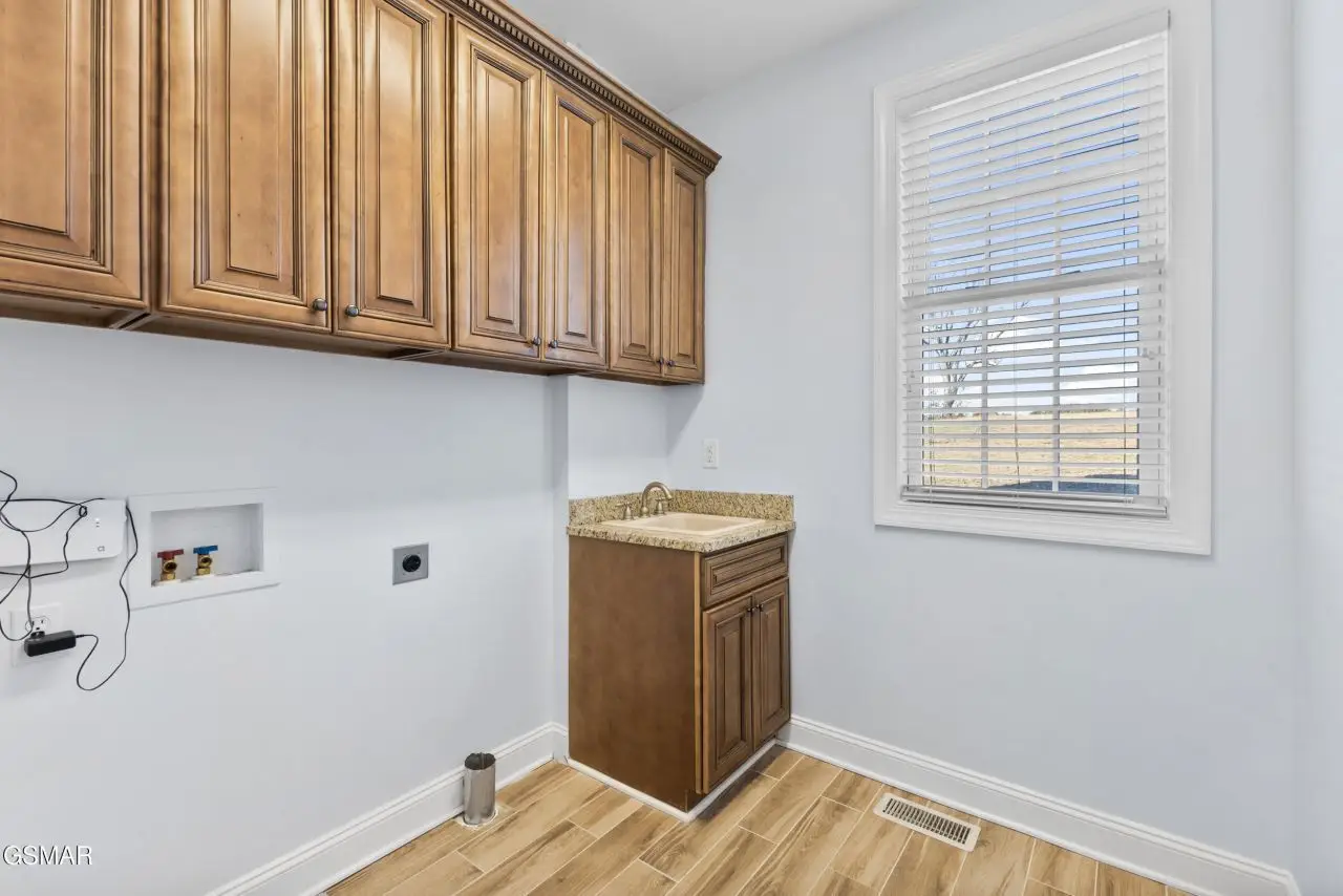 Welcome to this stunning 5-bedroom, 5-bathroom home located in the highly sought-after Cedar Ridge Subdivision. Situated just 45 minutes from downtown Knoxville, this property combines the charm of a peaceful neighborhood with the convenience of nearby amenities. Enjoy the beautiful disc golf and dog park located right across the street and the proximity to Merchants Greene, Morristown's newest hub for commercial and medical services, just five minutes away. This home is built to last, featuring thick poured concrete walls, craftsman-style trims, and exceptional attention to detail. The interior boasts soaring ceilings, including a dramatic 20'+ foyer and main room, over 10' ceilings in the master suite, and high ceilings throughout. The thoughtfully designed master bathroom includes a porcelain-tiled shower with heated flooring for ultimate comfort. There is an additional master suite upstairs. All bedrooms feature newly installed hardwood flooring, adding elegance and durability. The walk-out basement is a showstopper, offering abundant natural light, a theater room, a covered patio, a full bar, and even a panic room for added security. Recent updates completed by the prior owners include luxury vinyl plank (LVP) flooring in the basement, fresh paint throughout, new porcelain tiles, modern appliances, and more. Additional upgrades include granite countertops throughout, stainless steel Whirlpool appliances, manifold cut-off Pex plumbing system, 2-year-old gas water heater, and HVAC system. This home is truly move-in ready, offering a rare combination of luxury, functionality, and modern updates. Don't miss your chance to own this exceptional property. Call today to schedule your private showing!
