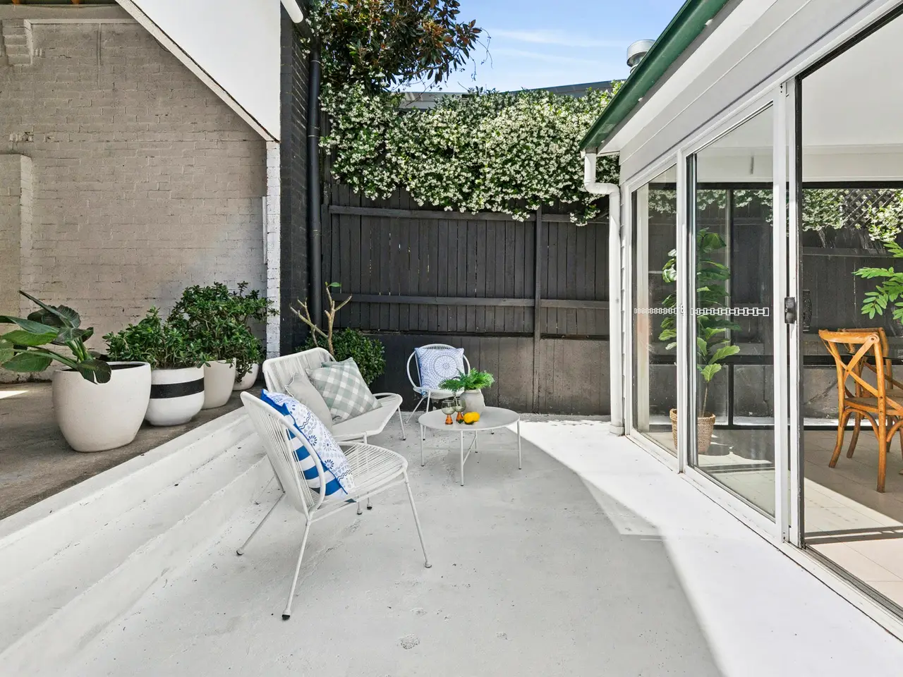 Sunny north-facing rear courtyard