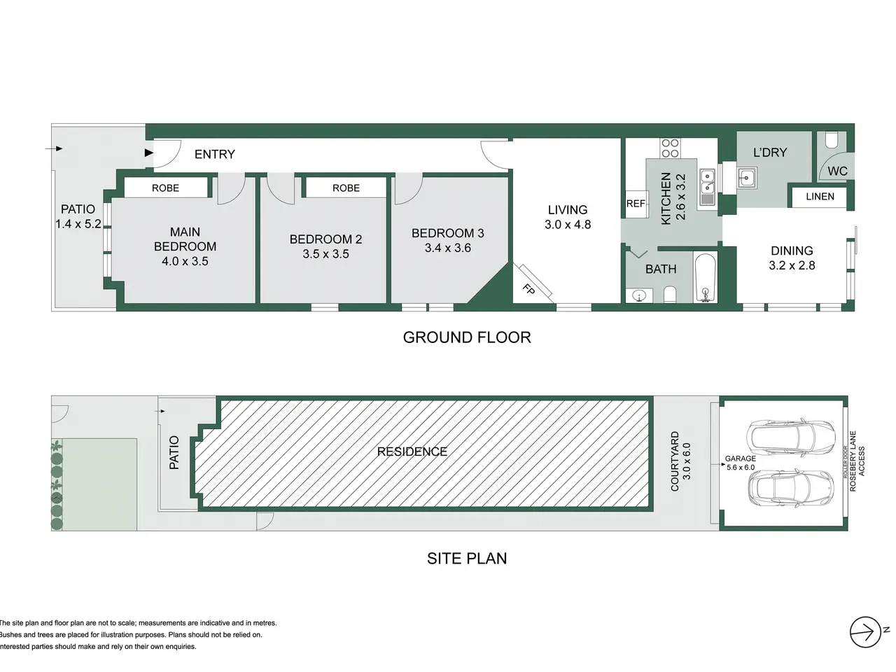 Dual-height double garage with rear lane access
