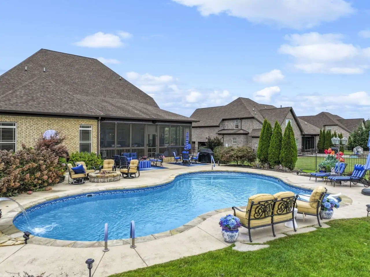 This amazing home has it all! You will love the tall ceilings & detailed trim, a main level office/dining room, 2-story stone fireplace, hardwood flooring in ALL the living areas, a large bonus room over the garage, 41'x24' heated pool with a large patio with a fire pit, huge screened porch, & level lot with an irrigation system & backyard that is fenced! The main floor primary bedroom opens to the screened porch and has a wonderful bathroom suite. The primary closet passes through to the laundry room. All bedrooms have walk-in closets, their own bathroom vanity, and connect to a full bathroom. The main HVAC is new (2025). The location is 5 min from Providence Marketplace, 15 min from the airport, & 25 min from downtown. Percy Priest Lake & Long Hunter State Park are within a 10-15 min drive.