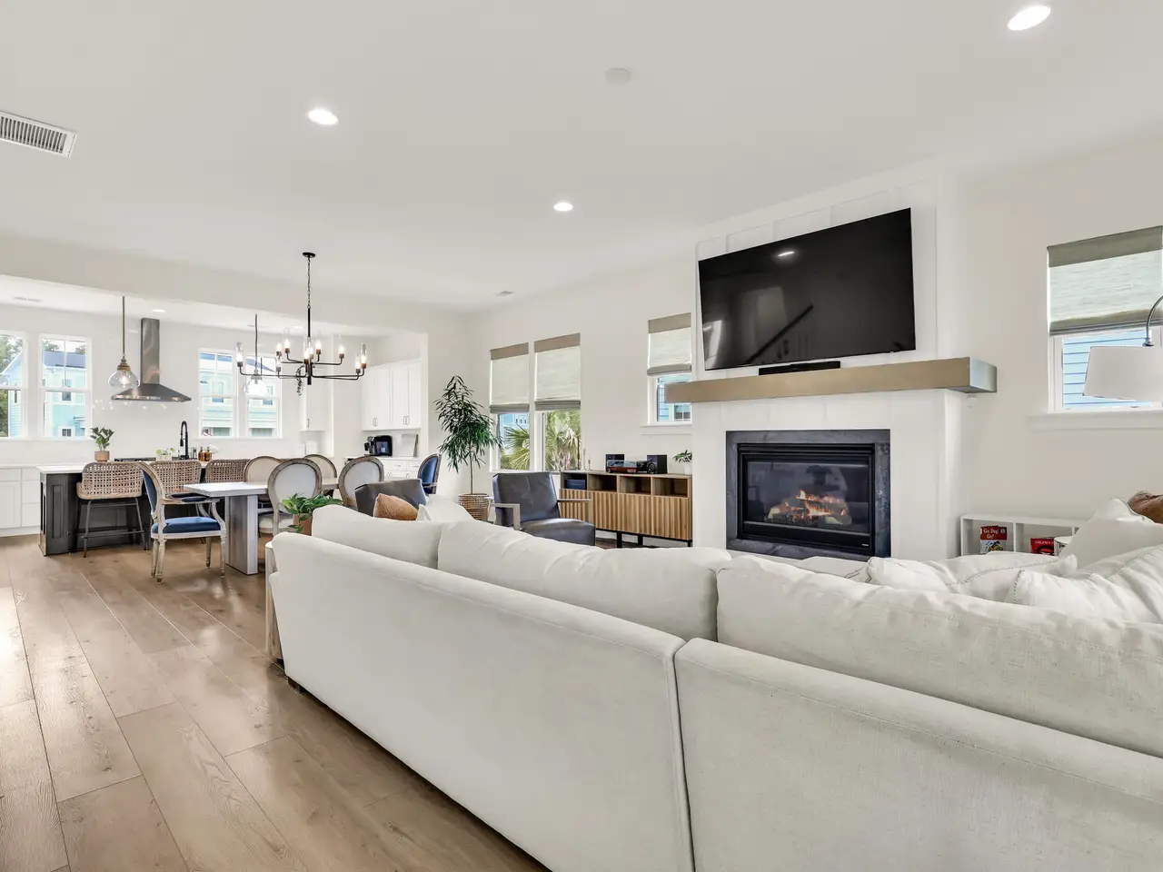 Incredible home in Stratton by the Sound on a large corner lot with beautiful finishes throughout. 1439 Stratton Place is 2884 square feet boasting 4 bedrooms and 3.5 bathrooms with a large bonus loft space, screened back porch, and huge fenced backyard. The welcoming front porch is the perfect spot to take in the sunset! Upon entry, the bright foyer makes way to the home's open concept floor plan. The stunning gourmet kitchen flooded with light features a large center island with room for seating, abundant cabinet space, counter to ceiling subway tile backsplash, separate pantry, and high end KitchenAid stainless steel appliances including double wall ovens, a six-burner gas cooktop with hood vent, and an under counter beverage center. The open-concept great room has a spacious dining area and gas log fireplace with natural wood mantle and board and batten accents combining coziness and coastal charm. Off of the great room is access to the screened porch overlooking the large fenced in backyard and covered patio allowing plenty of space for indoor-outdoor living and entertaining family and friends. The spacious primary suite featuring custom trim work is located on the main level and overlooks the large backyard. The primary bathroom has a dual vanity with undermount sinks, frameless glass shower, separate water closet, large linen closet, and an expansive walk-in closet. Rounding out the first floor layout is a half bath for guests, a large coat closet that can serve as a drop zone space, and access to the drive under 2-car garage that spans the footprint of the home. The garage has recently been enclosed for improved conditioning and provides plenty of room for vehicles, a golf cart, and storage of any tools or recreational gear. Upstairs is a bright and sizable loft space perfect for an extra hang out area, upstairs playroom, or home office space. Three additional bedrooms are on the second floor, each with a large closet. Two of the bedrooms share a Jack & Jill bath with dual sink vanity and tub/shower combo. A hall bath with single sink vanity and tub/shower combo serves the remaining upstairs bedroom. A laundry room with sink and space for storage and shelving is also located on the second floor. This home is just down the street from the neighborhood pool and park! Stratton by the Sound is conveniently located in Mt. Pleasant just 15 mins to Isle of Palms and 30 minutes to downtown Charleston, 10 minutes to Mt Pleasant Towne Centre, and less than 5 minutes to Charleston National Golf Course. Do not miss the opportunity to own a beautiful Lowcountry home on a large corner lot at 1439 Stratton Place!