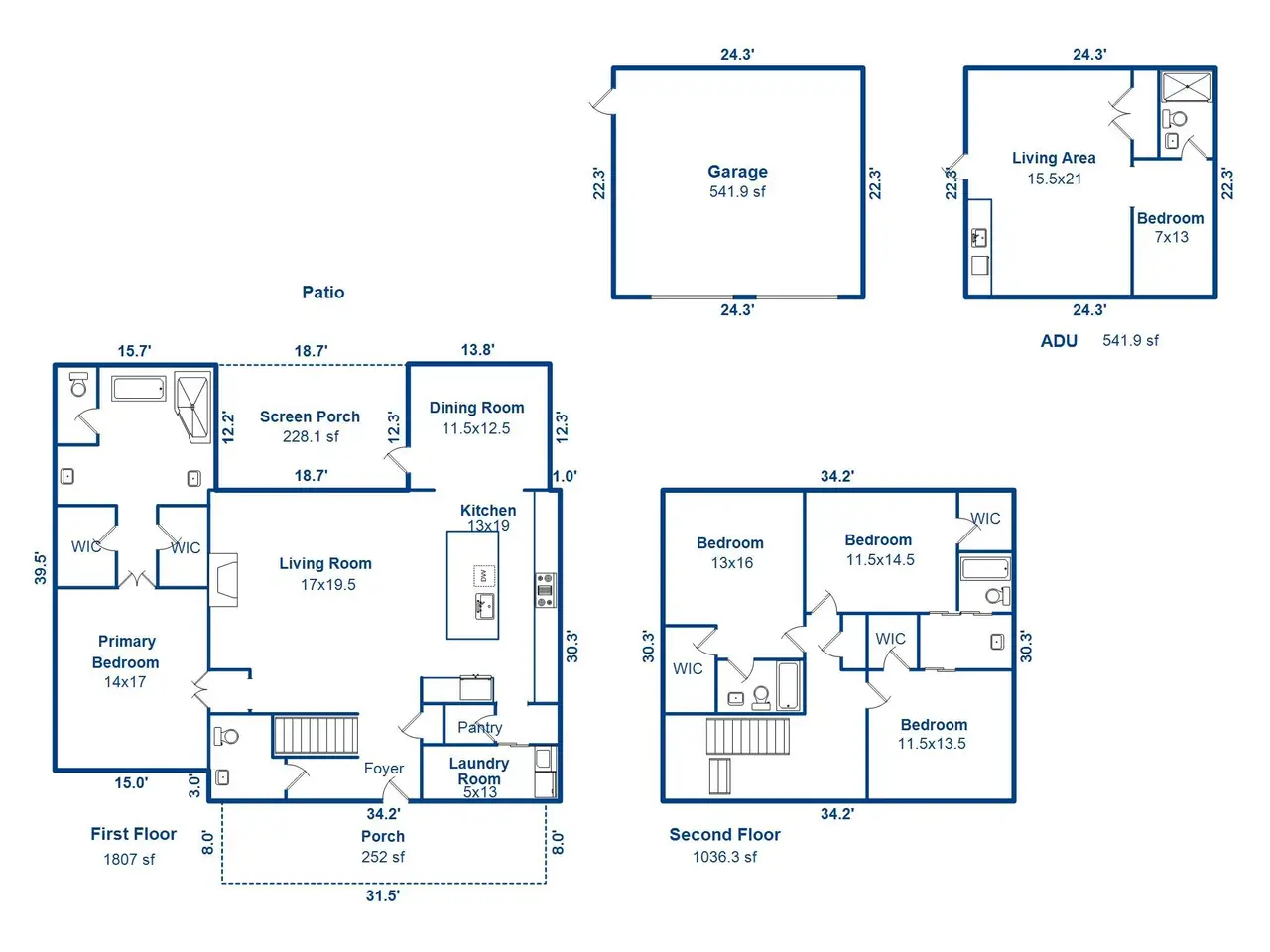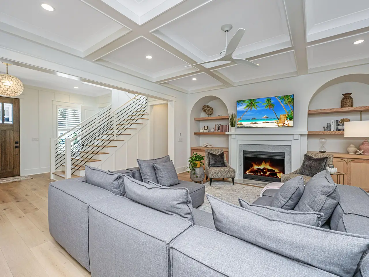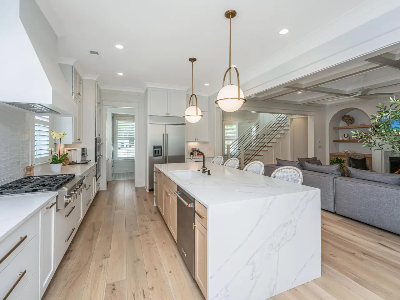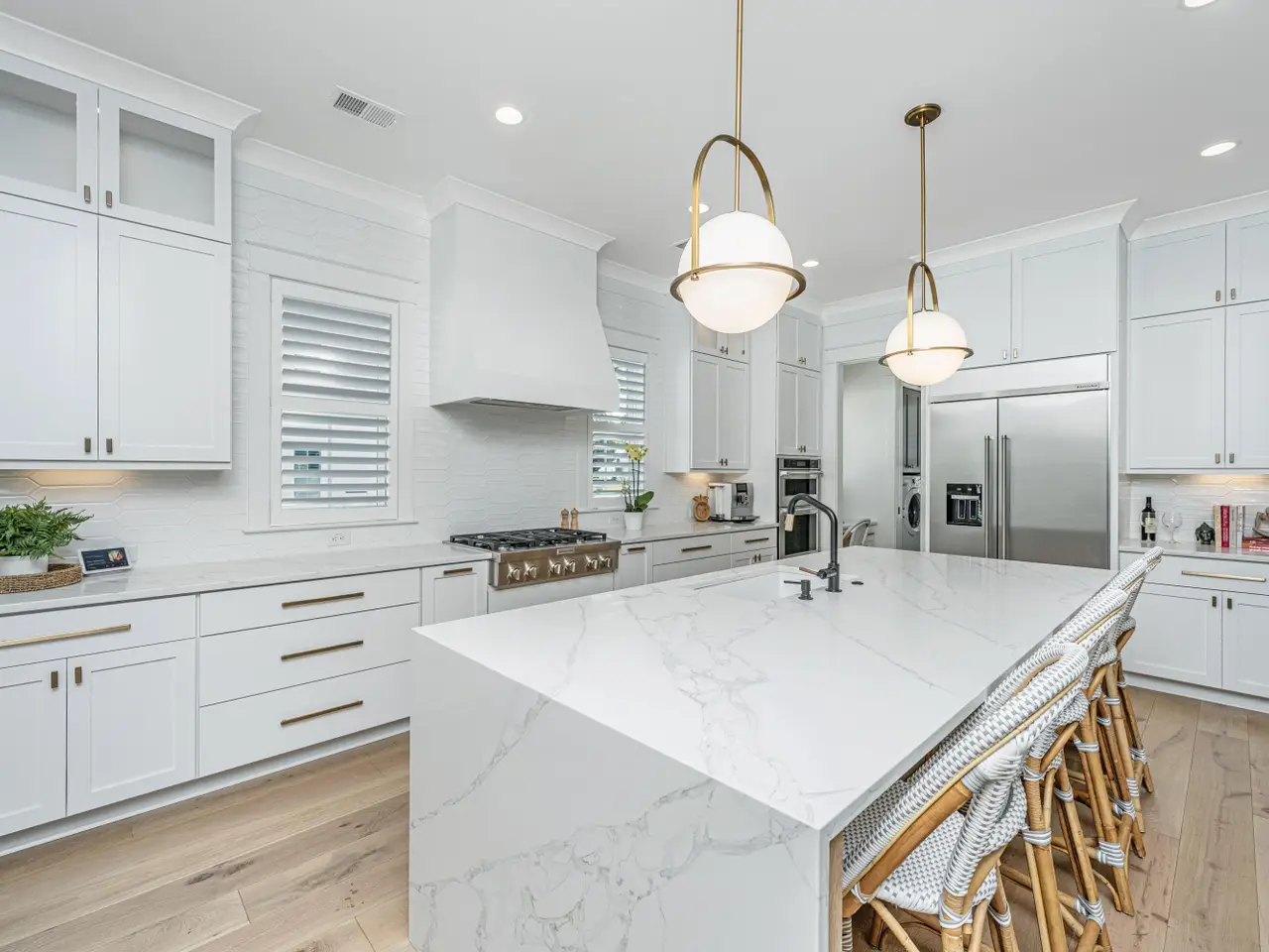 Welcome to this stunning, magazine-worthy, Cline custom built home in the highly sought-after Riverside section of Carolina Park. Barely lived in and meticulously maintained, this home exudes luxury and attention to detail at every turn.The main home features 4 spacious bedrooms and 3.5 beautifully appointed baths. The welcoming foyer flows seamlessly into the comfortable family room, where a fireplace is flanked by custom cabinetry-providing both elegant storage and a warm, inviting focal point with its rich wood finishes and graceful arched openings.The family room opens to a gorgeous gourmet kitchen highlighted by an oversized island with waterfall edges, upgraded cabinetry with finished upper cabinets for extra storage, and premium appliances. The warm wood cabinets on the island tie the kitchen and family room together beautifully. A walk-in pantry with wood shelving, a built-in desk area, a drop zone and a laundry room are all conveniently located nearby. The adjacent dining area is ideal for both intimate dinners and large gatherings. The primary suite is conveniently located on the main floor. The master suite features a dramatic vaulted ceiling and his and hers closets leading to a spa-like bath with a freestanding soaking tub, oversized walk-in shower, dual vanities, and a private water closet. Upstairs, you'll find three additional bedrooms. Two share a Jack-and-Jill bathroom, while the third has its own ensuite. All bedrooms offer generous closets, and a large linen closet adds extra storage. Enjoy outdoor living on the screened porch, accessible from both the family room and dining area, overlooking a fully fenced backyard with a custom patio, stepping stones, and professional landscaping. Adding to the home's appeal is a separate, thoughtfully designed accessory dwelling unit (ADU) complete with a bedroom, full bath, kitchenette, and living room - perfect for guests, extended family, or a private home office. Every space has been intentionally crafted to balance elegance, comfort, and functionality-offering the perfect blend of modern luxury and timeless design in one of Mount Pleasant's most desirable neighborhoods. Additional features include a metal roof, coffered ceiling in the family room, designer lighting throughout the home, wood steps with metal rails and so much more. Riverside at Carolina Park offers an endless array of amenities, including the Lake Club, which features a resort-style pool, picnic pavilion, and fire pit overlooking the picturesque Bolden Lake. Residents also enjoy community playgrounds, tennis/pickleball courts, an open-air pavilion, dog park, miles of walking trails, as well as a crabbing dock. Sawyers Island residents have access to a private dock and kayak/storage area. Schools, restaurants, shops, beaches and historic downtown Charleston are all just a short drive away.