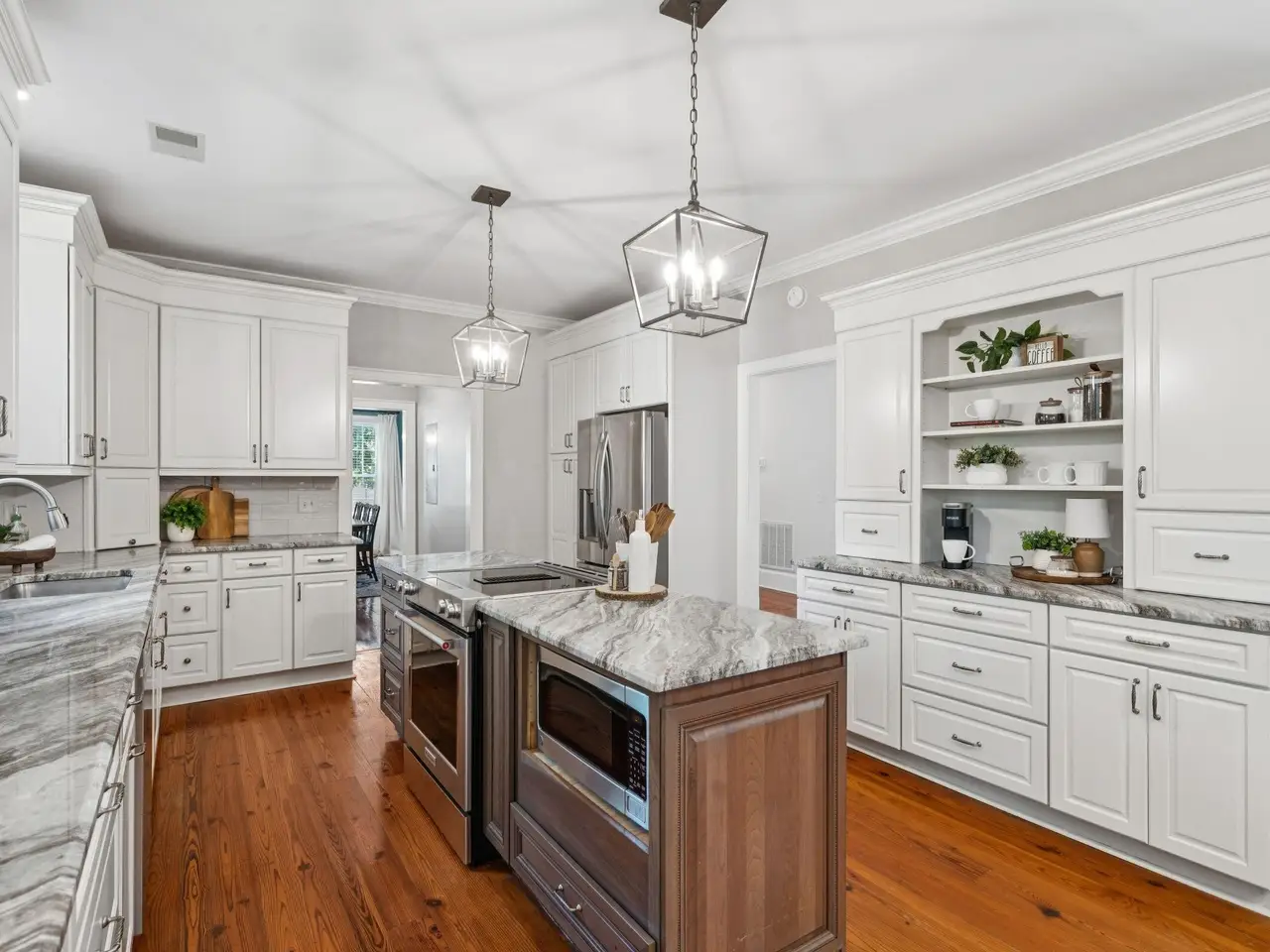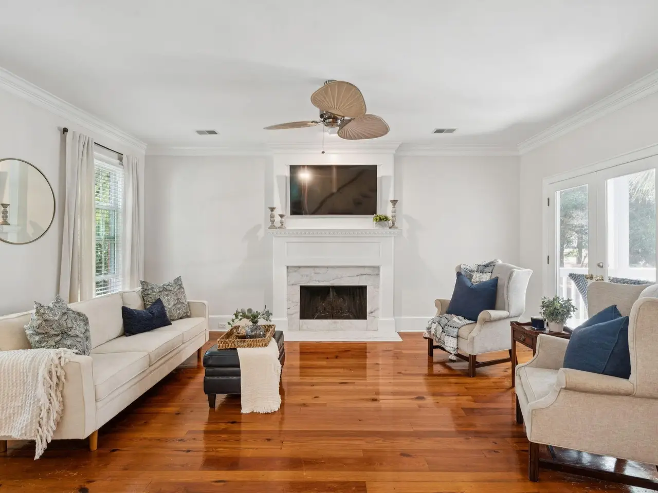 Classic and elegant, this stately brick Colonial is located in Brickyard Plantation, one of Mount Pleasant's most centrally located and highly sought after neighborhoods. Nestled deep into the Old Brickyard section, the home is positioned in the midst of mature Magnolia trees and Lowcountry foliage. Upon entering you'll find it evident that this home was built in a timeless style but with modern updates including a renovated kitchen, primary bath and BRAND NEW ROOF. Details such as hardwood floors and custom moulding are present throughout the first floor.A traditional layout with welcoming foyer offers immediate access to the living room. This room is generously sized with a beautiful fireplace boasting a custom mantle and marble surround while french doors offer access to the screened in porch. A formal dining room, featuring chair rail and crown moulding, is large enough to accommodate friends and family for those special occasion dinners so go ahead and volunteer to host the next big celebration! Adjacent the formal dining room is the large, eat-in kitchen boasting custom painted cabinets, granite countertops, glass tile backsplash, large center island with microwave shelf, a sunny casual dining nook, and a built-in desk/home command center. Even the most discerning home chef will appreciate the updated Kitchen Aid range, abundance of countertop prep space and an appliance garage. The kitchen opens to a flex space that would be ideal for use as a "Cocktail Lounge", the latest trend in home design and entertainment, which also offers access to the screened-in porch. Additional first floor conveniences include a guest powder room, a large laundry space, and a small drop zone area located just inside as you enter via the garage or the side entrance. This small but mighty appointment provides a place to hang jackets and backpacks to keep your living space tidy! Upstairs, the owners' suite features a luxury bath complete with double vanity, walk-in custom tiled shower, soaking tub, and a large walk-in closet. Two secondary bedrooms share a Jack-n-Jill styled full bathroom. The Owners' Suite and one secondary bedroom both have access to a second floor sunroom. This flexible space could be used as a home office, nursery, wellness/yoga studio, or convert it into the ultimate luxury closet! A spacious room over the garage serves as the fourth bedroom and offers semi-private access and has its own full bathroom. Complete with a wall of built-ins, this generous space is perfect for use as a mother-in-law suite, teen retreat, media room, secondary family room, or perfect guest suite. When you aren't enjoying all that the inside of this home has to offer you'll find yourself on the patio grilling dinner or enjoying an evening cocktail on the screened-in porch while enjoying the privacy this tree-lined yard offers. Just imagine building your own outdoor oasis as there is plenty of room for a pool and outdoor kitchen! Traditional Colonial style homes are rare, and highly coveted in Mount Pleasant and this won't last. Located in Brickyard Plantation, amenities include neighborhood pool(s), tennis courts, boat launch, club house, miles of walking trail, basketball court, and play park. All conveniently located just minutes to beaches, hospitals, schools, and the world-class shopping and dining of historic downtown Charleston.