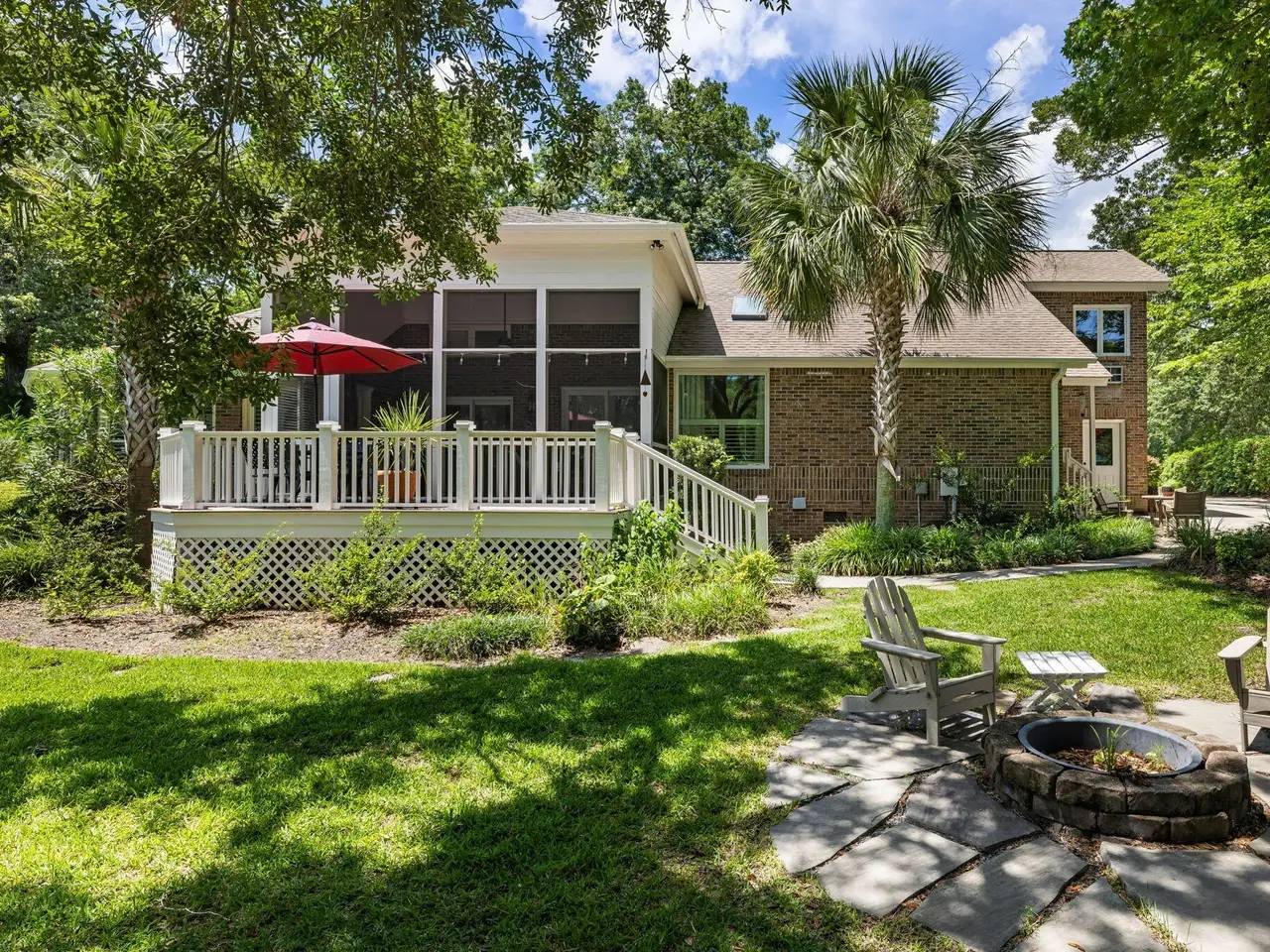 Stunning brick one-story with abundant natural light and timeless finishes on quiet cul-de-sac lot on the Snee Farm golf course! Living room with vaulted ceiling, double sided wood burning fireplace, and separate den. Kitchen has adjoining breakfast area and connects to formal dining room, mudroom, and a laundry room with a half bath. Side entry two car garage and a separate side entrance into the mudroom and half bath. Screened porch and deck overlooking the 16th green. Room for a pool! Master suite, 2 guest bedrooms, an office/4th bedroom with second fireplace, and a bonus room over the garage (with walk-in attic access and potential to add 4th full bath) give this floorplan total flexibility. Solid hardwoods and plantation shutters throughout. Oversized bedrooms and tons of storage.