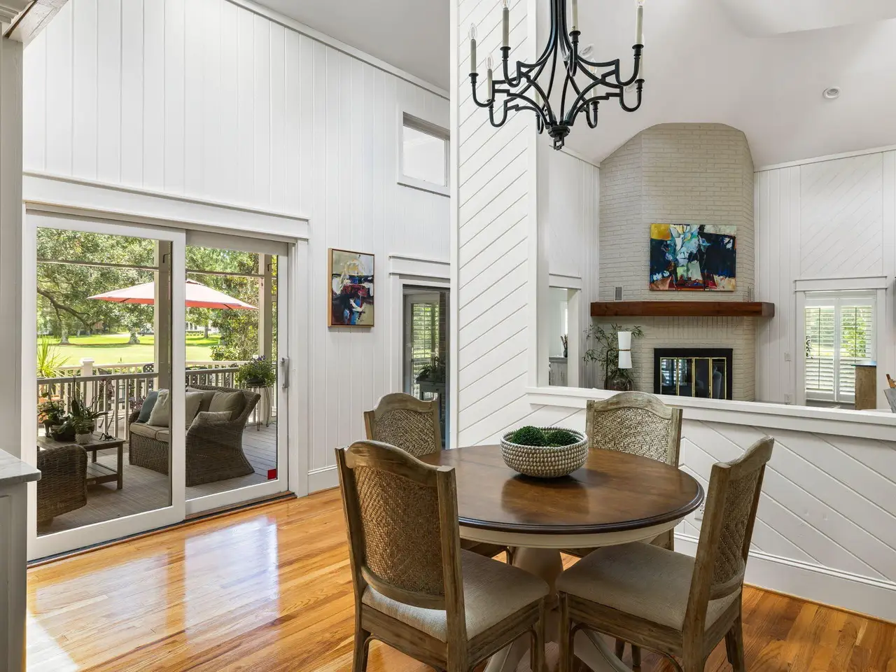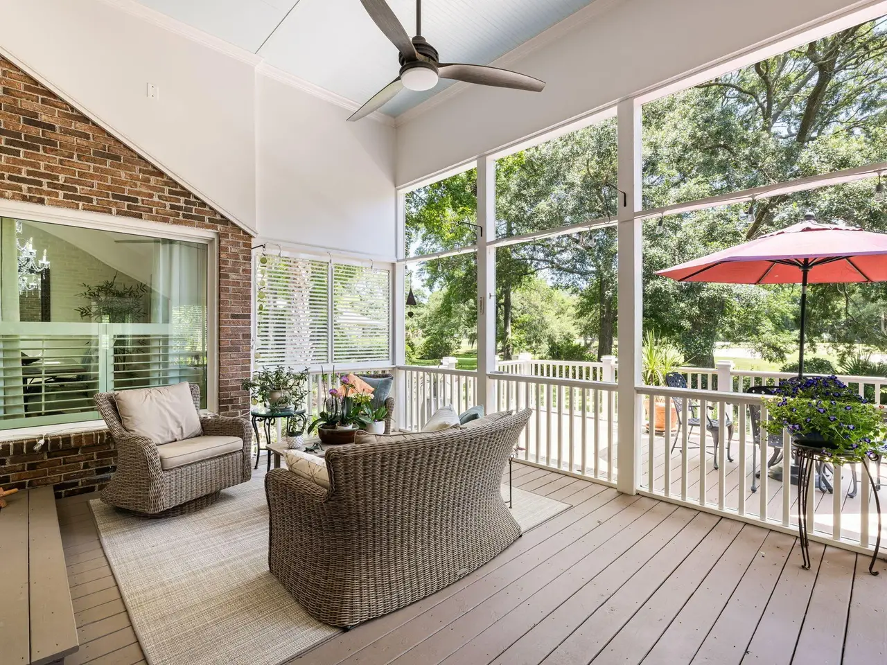 Screened porch overlooking golf course
