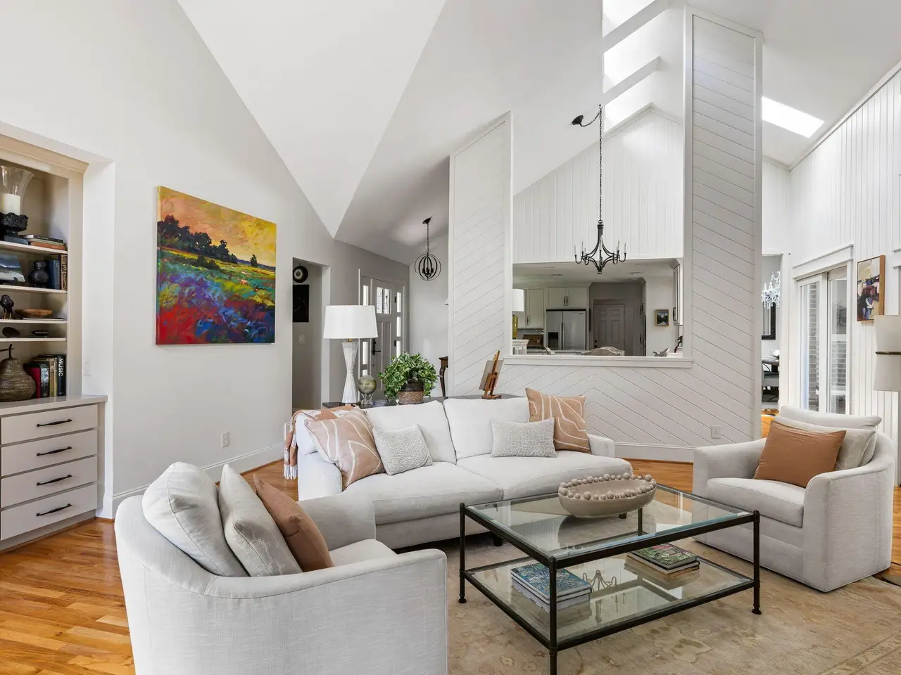 Vaulted ceiling with exposed beams