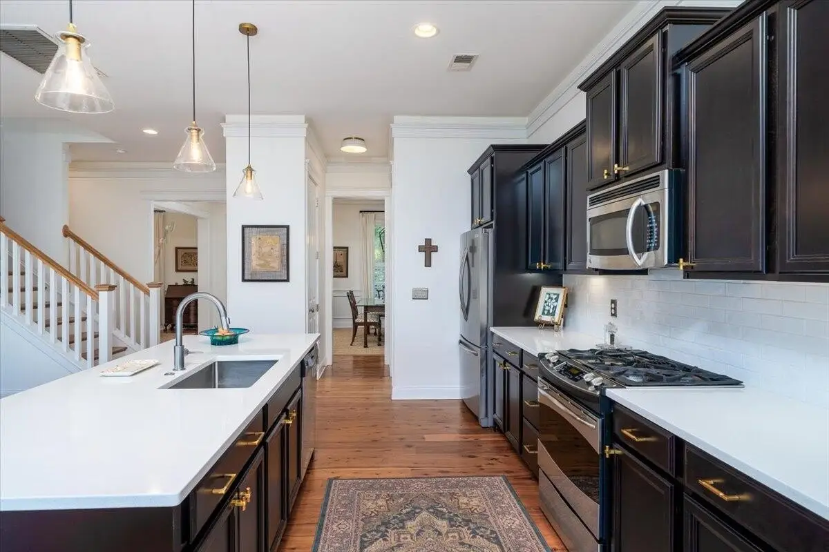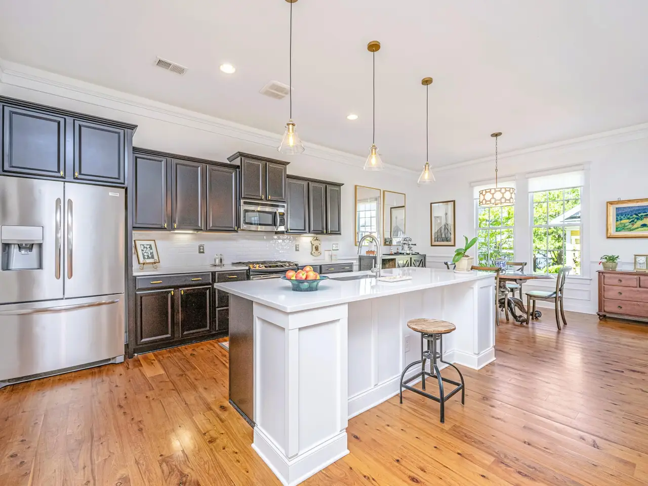 Nestled within the highly sought-after Watermark neighborhood, this home blends urban sophistication with a warm, hometown ambiance, the essence of refined Lowcountry living and southern charm. Its classic modern open-concept floor plan features abundant natural light, high ceilings, and gorgeous natural wood floors. The center hallway is flanked by an open living room and an opposite dining room which leads seamlessly into the gourmet kitchen, complete with a large central island and plenty of cabinetry for storage - perfect for both entertaining and everyday living. The primary suite is a true sanctuary, offering a spacious layout, tray ceilings, and an en-suite bath with a soaking tub, dual vanities, and a large walk-in shower. Three more upstairs bedrooms are generously sized andoffer ample room for family, guests, or home office needs. Step outside and enjoy the serenity of the beautifully landscaped private backyard. Its large patio and lush, colorful landscaping, with a fruiting fig tree, create the perfect spot for outdoor dining, relaxing, or hosting friends. This home is designed with sustainability in mind. The crawl space is encapsulated, which enhances insulation and reduces energy consumption. The home is extremely energy efficient and generates substantial cost savings. The Watermark community is known for its beautiful surroundings and excellent amenities, including a 33-acre lake, lakeside trails, and a resort-style lakefront pool with a sun deck, trellis, changing facilities, and a playground area. This home is in the heart of Mount Pleasant, near some of the East Coast's premier beaches. Shopping venues and culinary treats are nearby. Charleston, with historic sites spanning from pre-Revolutionary to modern times, museums, galleries, vibrant unique boutiques, maritime interests, and an internationally renowned culinary scene, is only a short few miles away. Additionally, the area has first-rate tennis and golf facilities, a national wildlife refuge, national forest trails, and unlimited water activities for outdoor enthusiasts. This property presents a rare opportunity for buyers seeking a harmonious blend of luxury, sustainability, and community in South Carolina's most coveted locale.