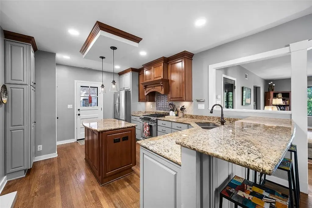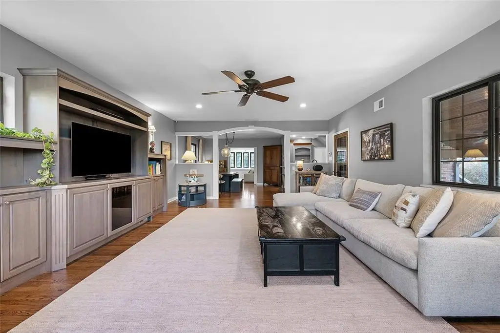 Charming brick Tudor sitting on a picturesque brick street offering 3 finished lvls of living space. Sun-filled rooms & timeless details include a 12' wdw seat tucked in a bowed LR wdw, HW that continue upstairs & wood-burning frpl. Pocket doors from LR lead to open concept DR & kit w/peninsula, isle & quaint corner desk- perfect for coffee or baking station. Sizeable family rm extends off the kit/DR highlighted by a huge triple window looking out to private, flat yard plus French door leading to 23x13 covered patio- ideal for outdoor entertaining. 3 comfortable 2nd lvl bedrms, including a primary ste w/updated en suite, 2 walk-in closets & 16x7 bonus space. Crisp white hall bath & sunny 12x6 den complete 2nd lvl w/landing leading to easily accessible 3rd floor w/bright & roomy 4th bedrm. Convenient powder rms on main & LL. Centrally located near schools, Uptown, shops & dining, this home combines character, comfort & convenience in one of the community's most desirable neighborhoods.