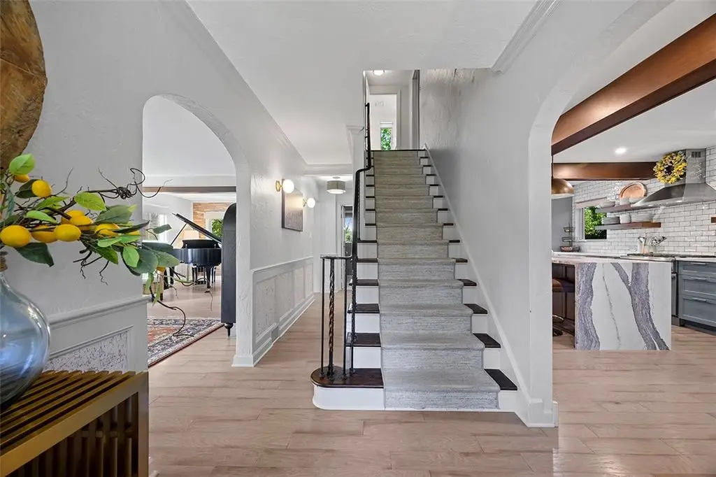 Charming Jr. Beam home in the heart of Mt. Lebanon, moments from schools, Uptown, dining, shopping & Rec Center! Modern fixtures & finishes blend beautifully w/original character - 8-panel doors w/glass knobs, plaster walls, hardwoods, archways, blt-ins & crown molding. Inviting LR features a stone fireplace flanked by built-ins & 12' opening to cozy den/lounge space, easily used as a DR. The show-stopping kitchen is a dream w/custom pale-blue cabinetry, quartz counters, floating shelves, 12' waterfall isle, beamed ceiling, hi-end appliances & coffee/beverage bar - all open to a spectacular family rm w/cathedral barrel ceiling, exposed brick, media wall, banquette dining space & French doors to spacious composite deck. Vaulted primary suite boasts a boutique-style en suite. Walk-out lower level ideal in-law or teen suite, gameroom, full bath, storage & mud rm/drop zone off 2-car garage. This remarkable home offers timeless charm, modern luxury and a prime Mt. Lebanon location.