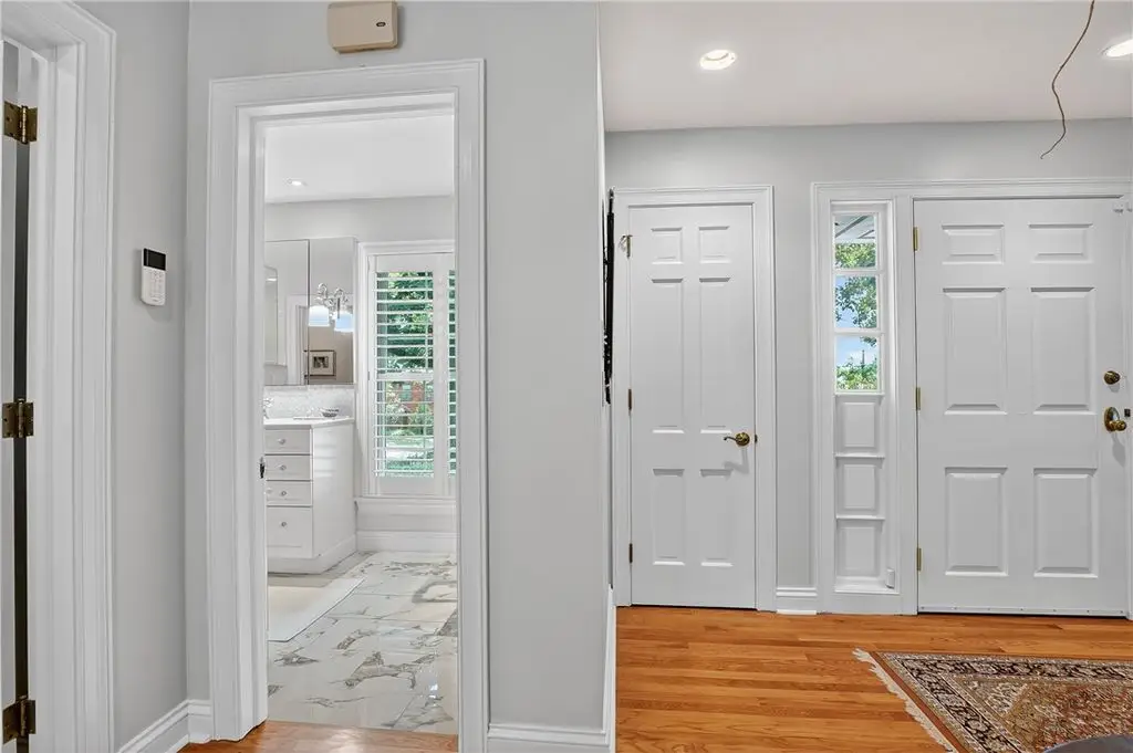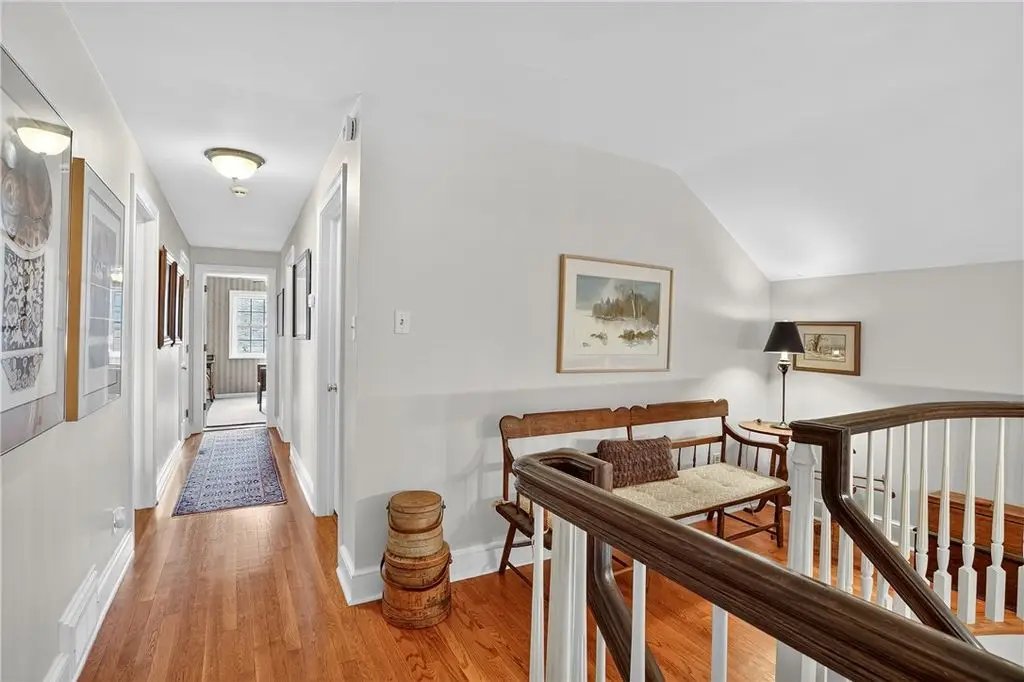 Welcome to 930 Valleyview Drive, a timeless white brick Cape Cod nestled in the heart of Mt. Lebanon's prestigious Virginia Manor neighborhood. This beautifully updated residence blends classic charm with modern living, offering sophistication and comfort at every turn. Step into a grand, sun-drenched entryway where a sweeping staircase makes a stunning first impression. The main level features a spacious and light-filled layout with thoughtfully removed walls for improved flow - perfect for both daily living and entertaining. The first-floor primary suite offers convenience and privacy, complete with a luxurious ensuite bath. Enjoy a fully renovated kitchen with high-end finishes that opens to an inviting family room, along with tastefully updated bathrooms throughout the home. Outdoors, a new aggregate patio surrounded by lush gardens and professionally landscaped grounds. Mature trees provide natural privacy, creating a peaceful retreat just minutes from schools, shops, and dining.