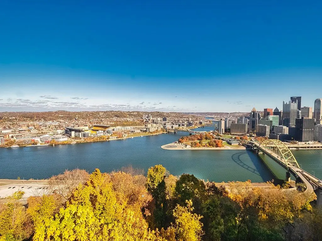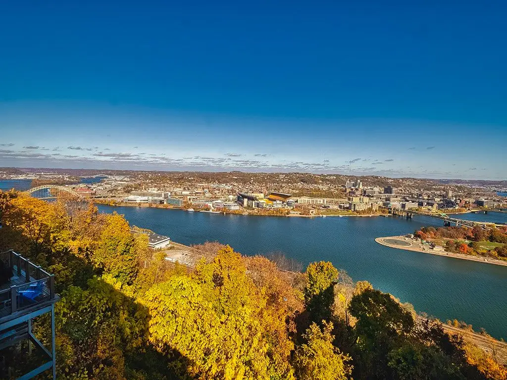 • Panoramic views of Pittsburgh skyline, rivers, and stadiums