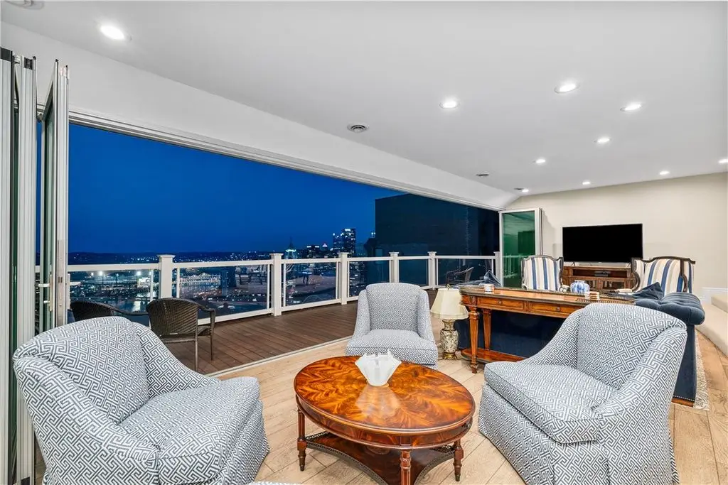 Experience luxury living in this stunning Mt. Washington condominium offering panoramic views of Pittsburgh's skyline, rivers, and stadiums. This spacious home features a sunken living room with floor-to-ceiling windows and balcony access, perfect for soaking in the cityscape. The open dining area flows into a fully equipped, step-saver kitchen. With three generously sized bedrooms - including a captive room ideal for a home office - and a luxurious primary suite with spa-like ensuite and private balcony, comfort meets elegance throughout. Enjoy the convenience of second-level laundry and an oversized car garage. Located just steps from the Incline, restaurants, and entertainment, this home offers a rare blend of peace, style, and city access. Wake up every day to million-dollar views and vacation-like living. Don't miss your chance to own this exceptional property on Grandview Avenue!