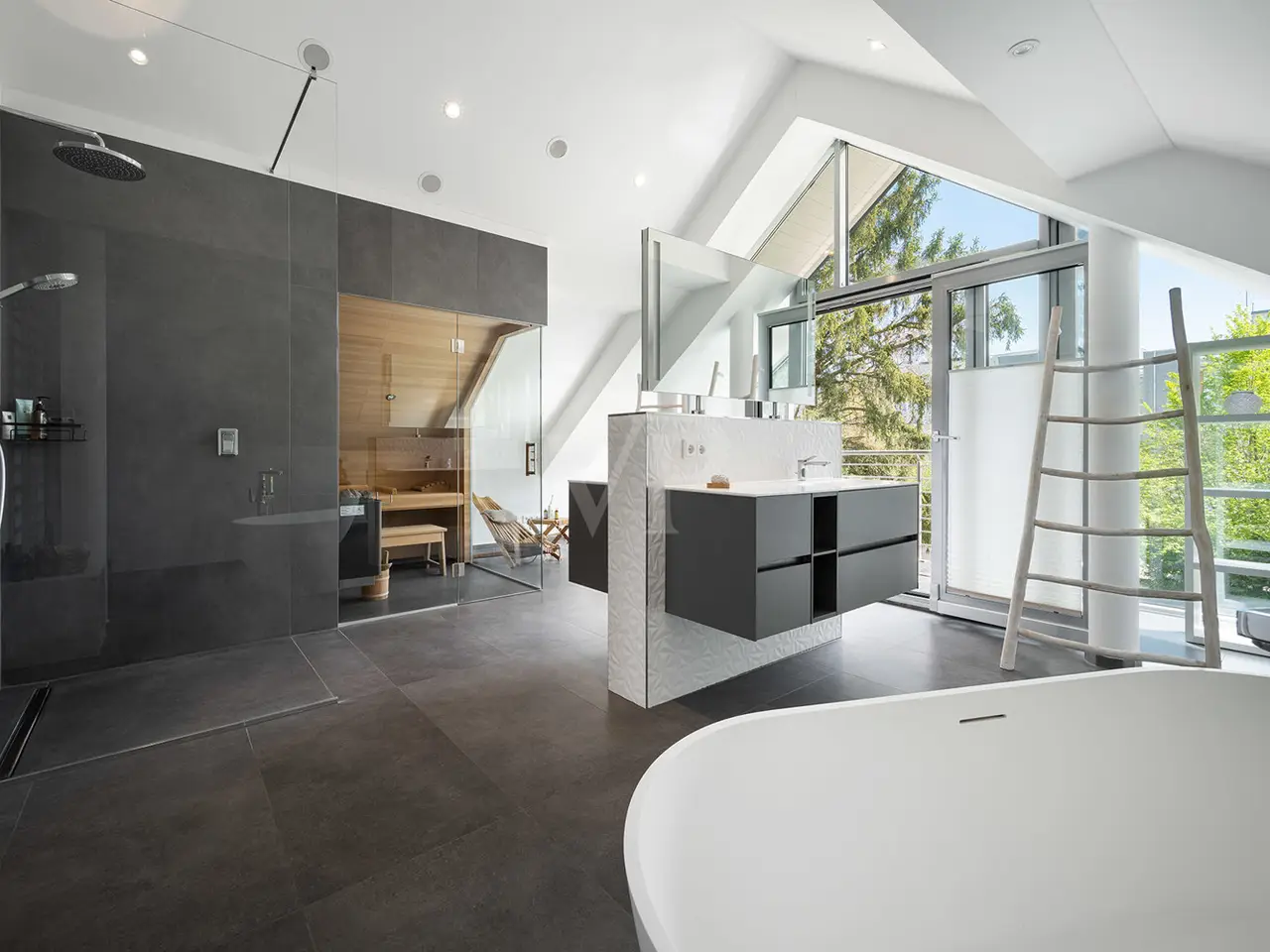 XL bathroom with spa bath, shower, and Finnish sauna