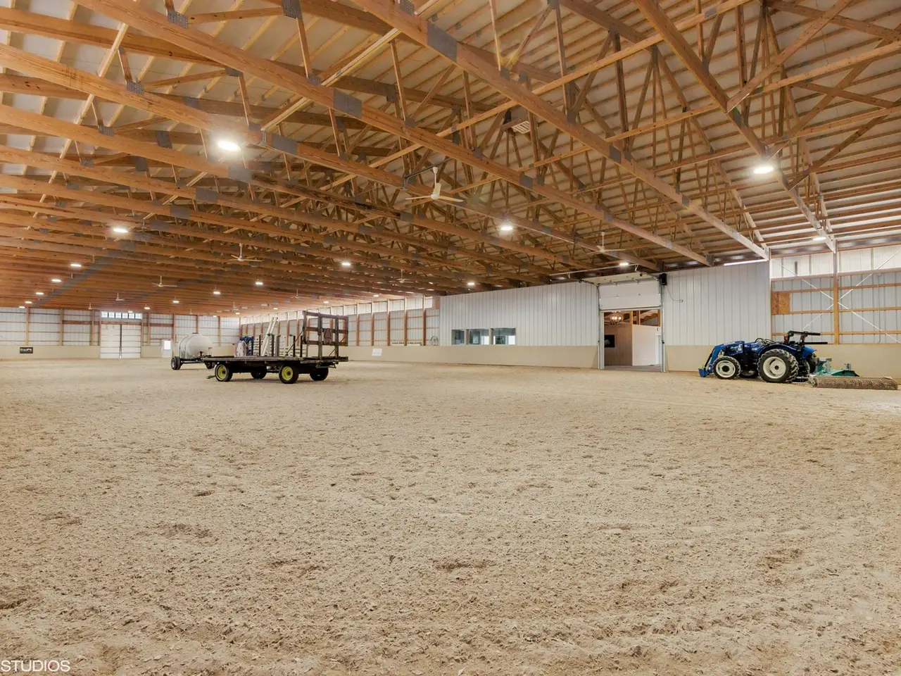 Stunning State of the Art Equestrian Facility on 15 beautiful acres with Ag Zoning! 21 stall, heated stable connected to BRAND NEW indoor riding arena (Morton Building 80x200x16) with GGT Equestrian Footing for elevated performance and safety. Brand new Viewing Room (Heated & AC), Tack Room, Wash and Farrier Stalls, Heated Laundry and Bath Rooms. BRAND NEW Outdoor Riding Arena (100x200) with sprinkler system and GGT Footing. Bunk House to sleep 5 with break room and kitchenette. Metal Hay Barn (40x60). 7 Grass Paddocks and 2 All-Weather Paddocks. Completely upgraded infrastructure-new well, septic, electrical and retention ponds per county code. PLUS a beautiful updated RANCH style home for yourself or your trainer/manager with fully finished basement with bedroom/bathroom! Don't miss this exquisitely updated farm where every detail has been thought of! Dreaming of your own ranch? THIS is the ONE! Located 30 minutes from O'Hare Intl Airport