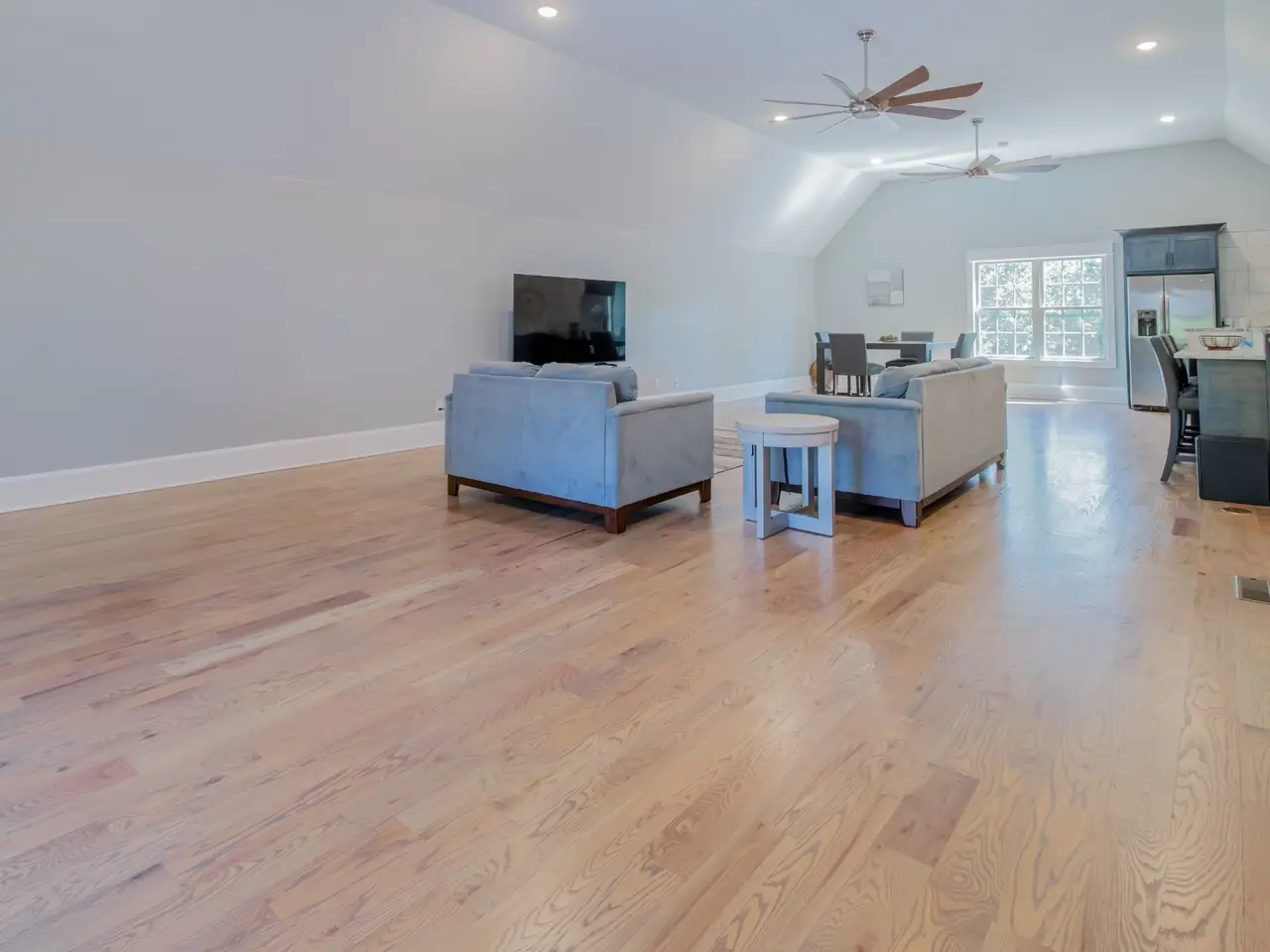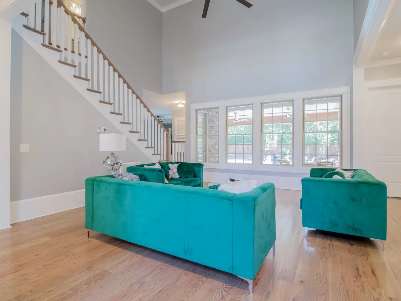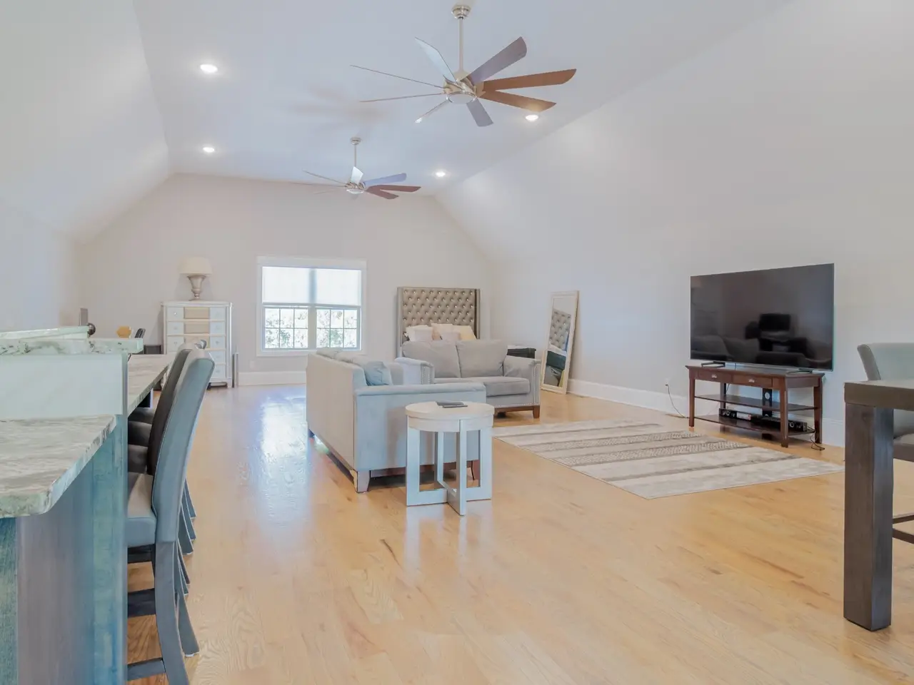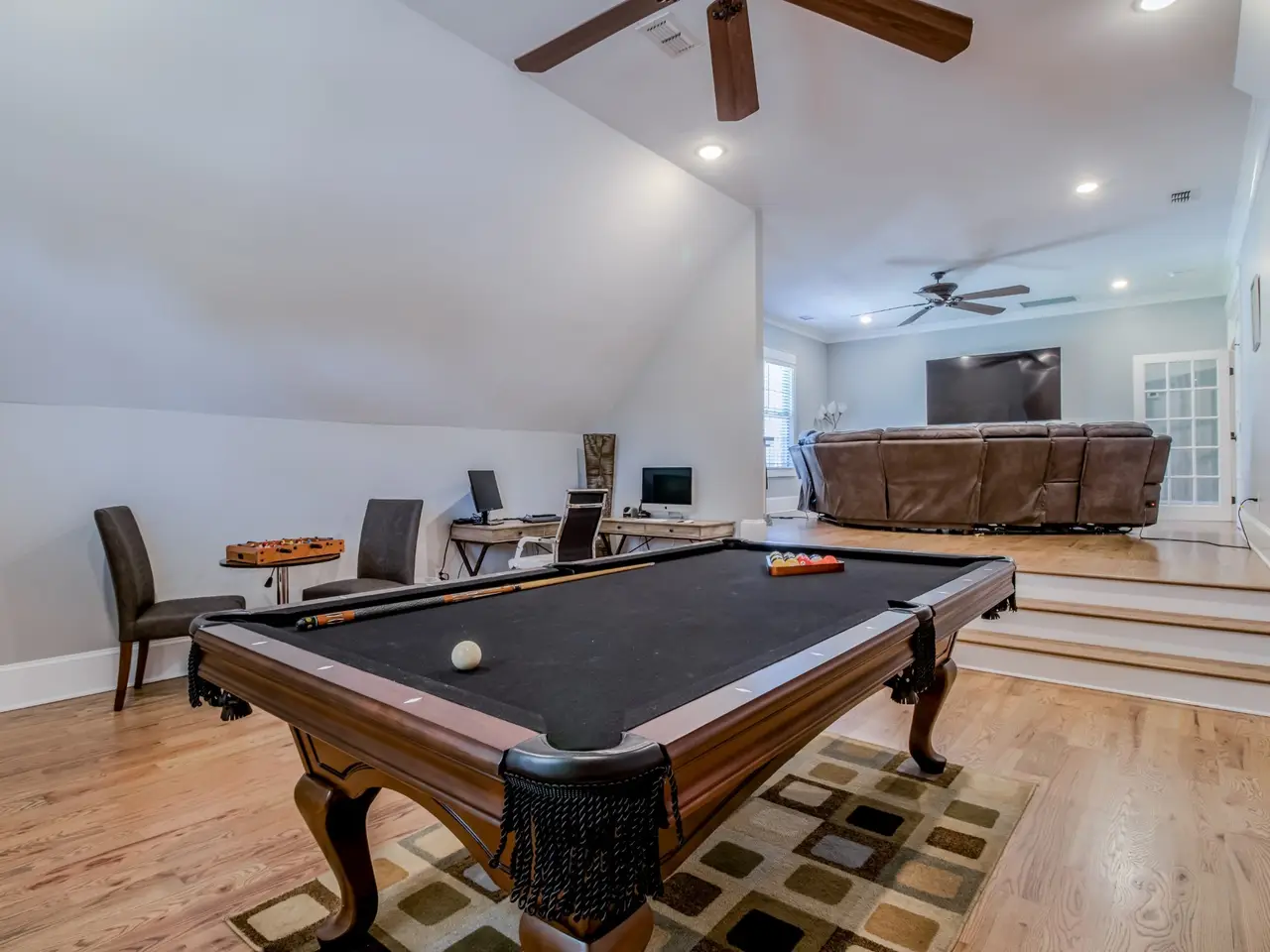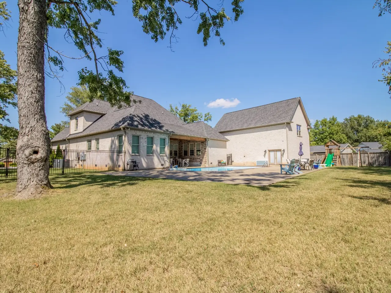 Beautiful home. The main level boasts 2 bedrooms - a huge primary suite with a massive walk-in shower, closet with built-ins. The second bedroom features its own bath and closet. There are 3 bedrooms on the second level, each with its own full bath. Gourmet kitchen opens into separate living area with fireplace. Wide planked hardwood floors throughout (no carpet). Interior louvered blinds. Room darkening blinds in den and primary bedroom. Detached garage includes apartment above. It is 1400 sq ft livable space with full kitchen and bath. Exterior provides private backyard, covered back porch, in-ground pool with new liner, and fenced in backyard. This Murfreesboro custom built gem offers space and style.