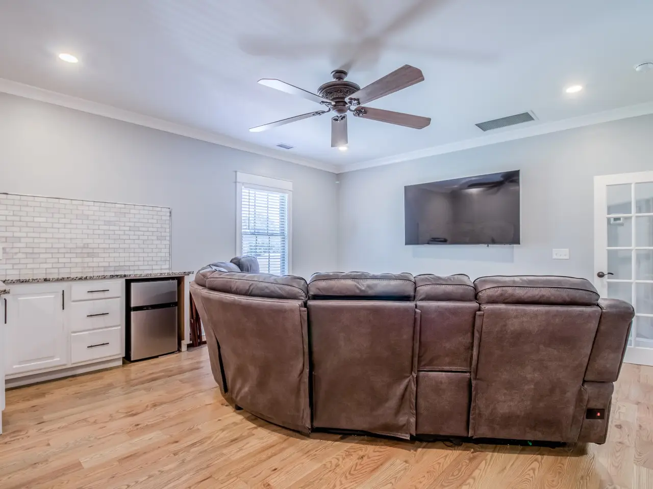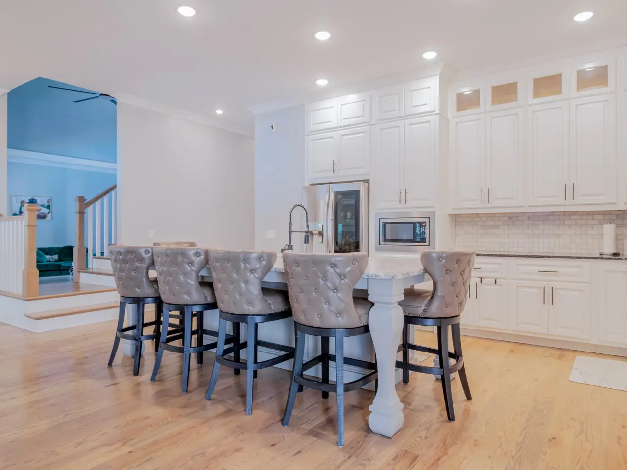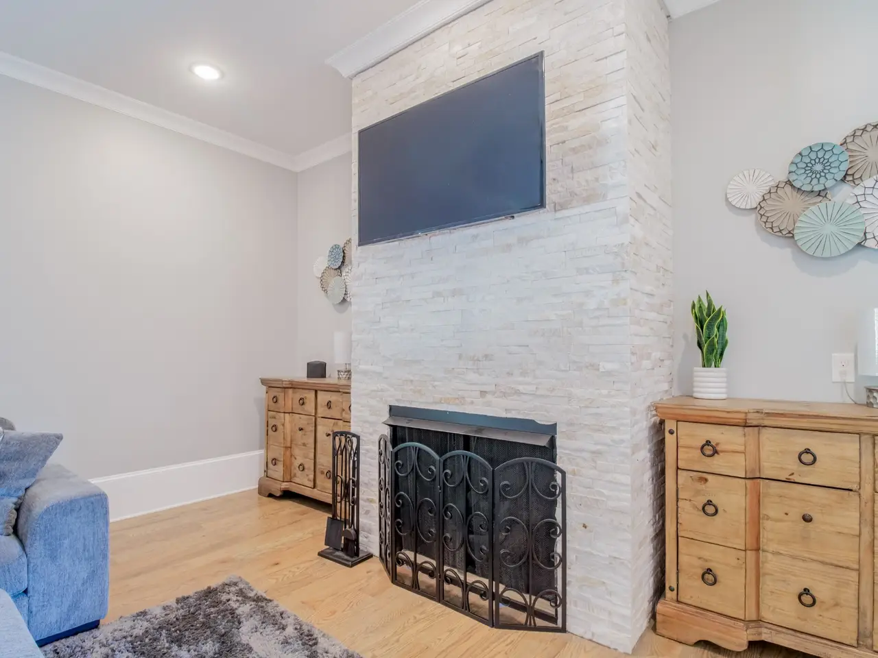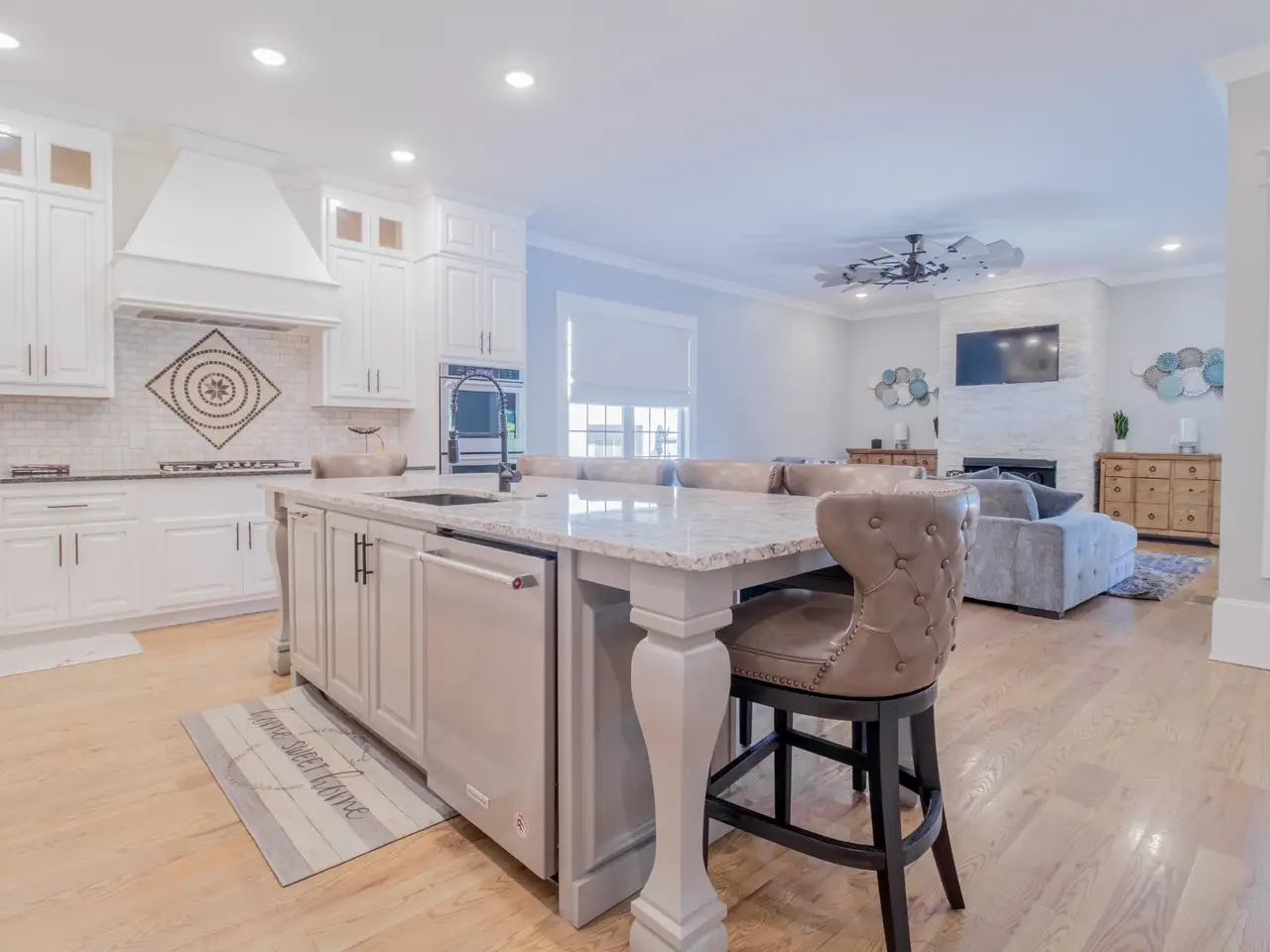 Beautiful home. The main level boasts 2 bedrooms - a huge primary suite with a massive walk-in shower, closet with built-ins. The second bedroom features its own bath and closet. There are 3 bedrooms on the second level, each with its own full bath. Gourmet kitchen opens into separate living area with fireplace. Wide planked hardwood floors throughout (no carpet). Interior louvered blinds. Room darkening blinds in den and primary bedroom. Detached garage includes apartment above. It is 1400 sq ft livable space with full kitchen and bath. Exterior provides private backyard, covered back porch, in-ground pool with new liner, and fenced in backyard. This Murfreesboro custom built gem offers space and style.