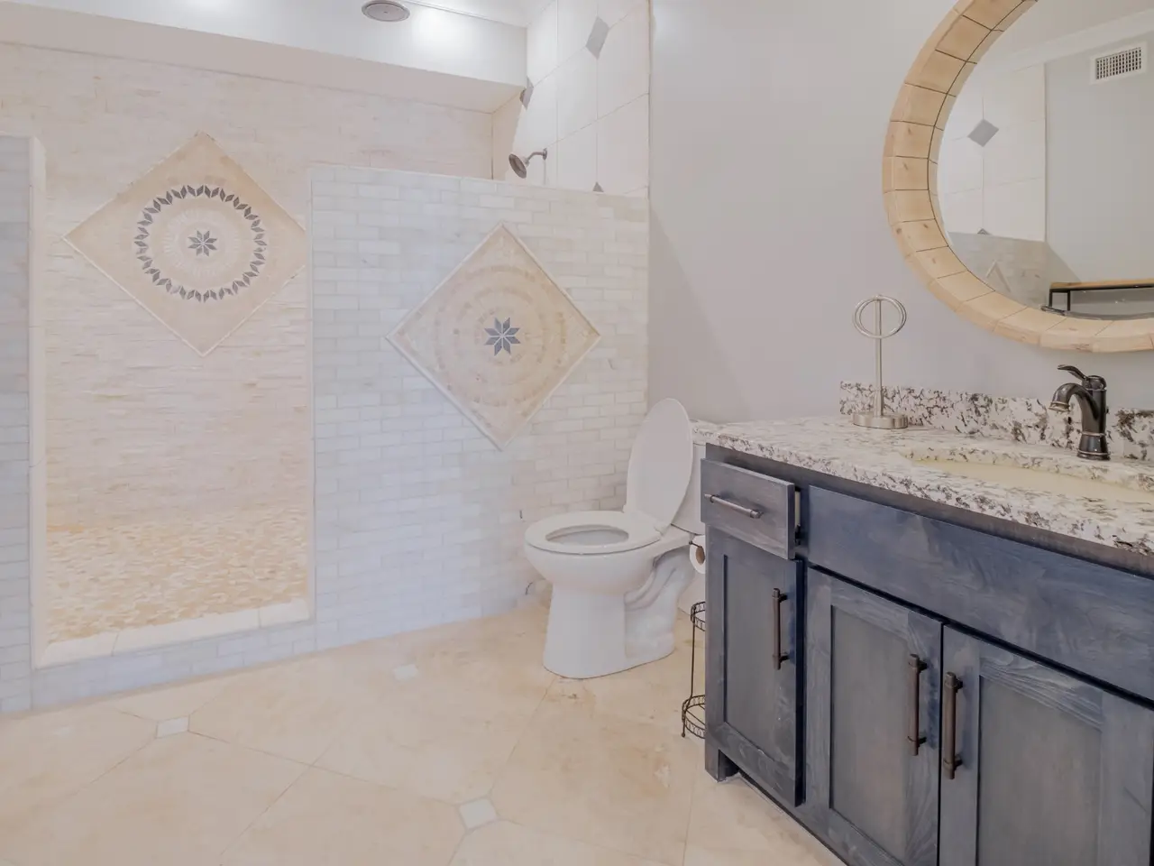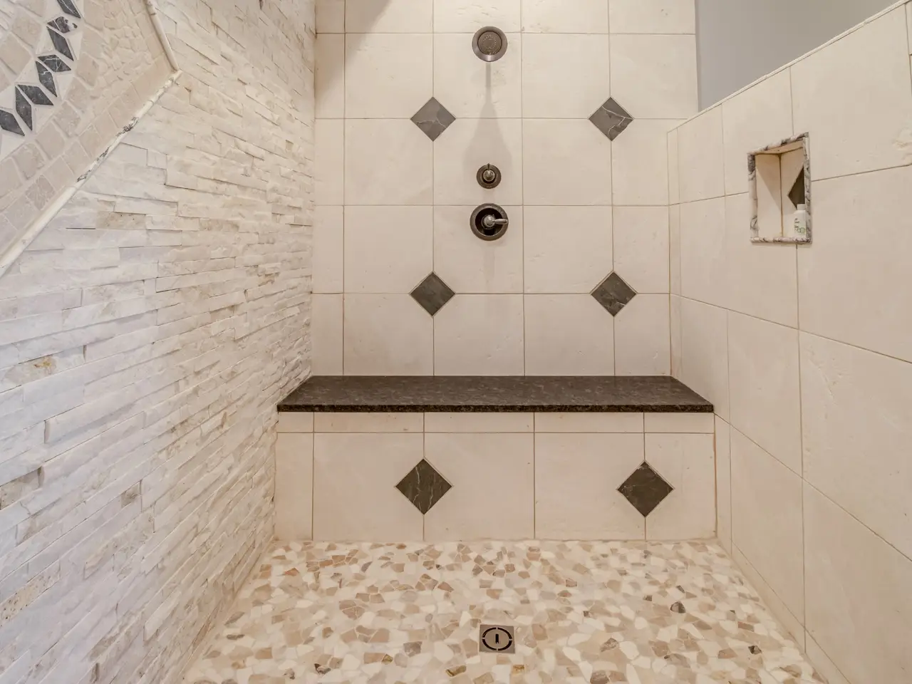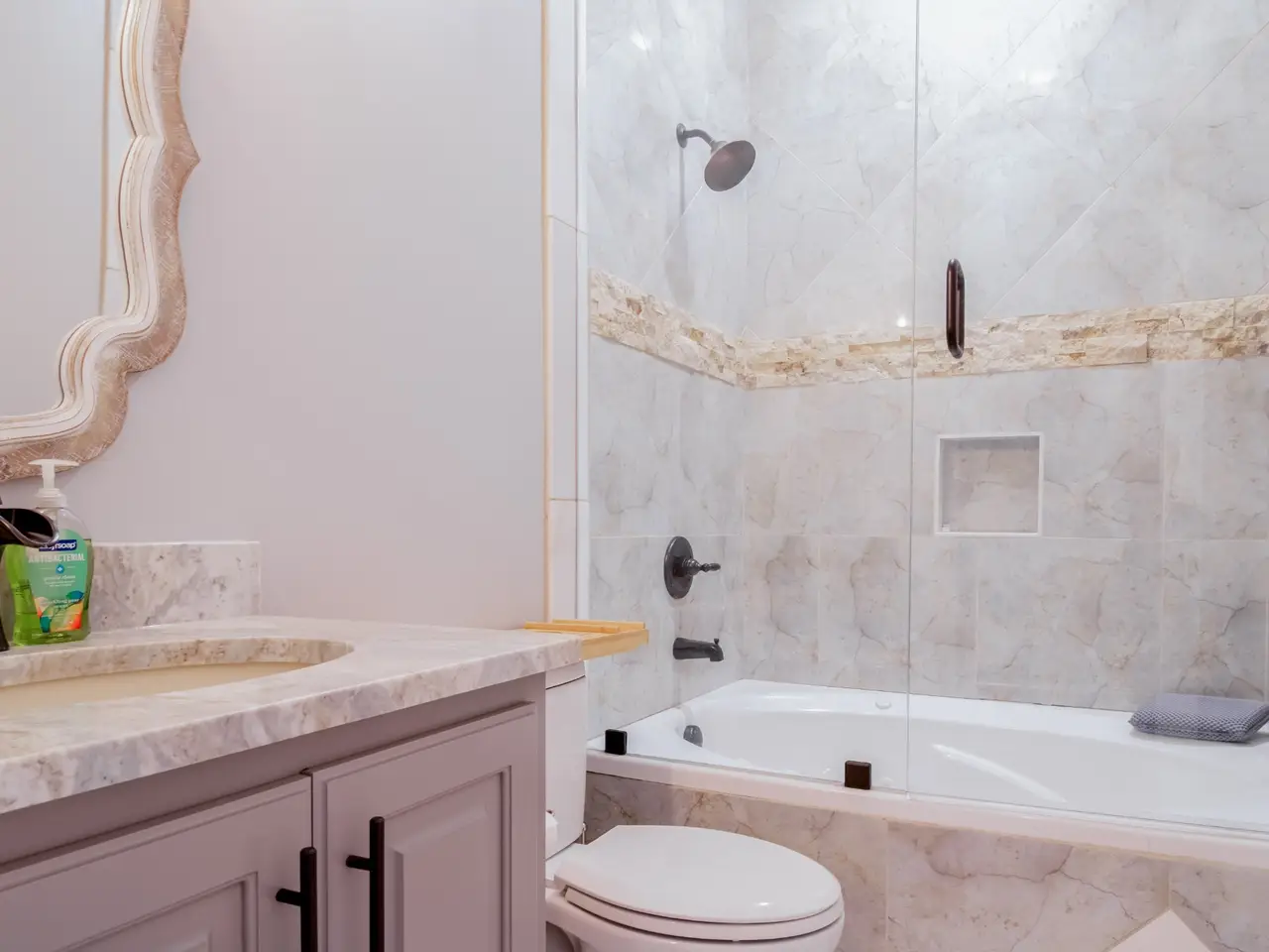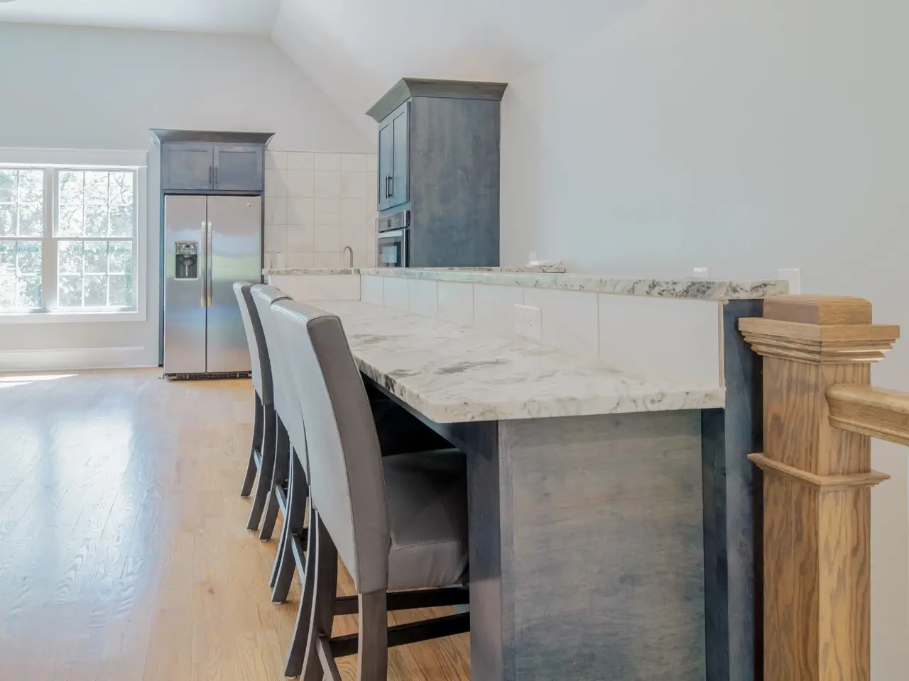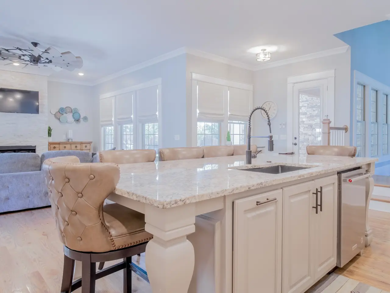 Beautiful home. The main level boasts 2 bedrooms - a huge primary suite with a massive walk-in shower, closet with built-ins. The second bedroom features its own bath and closet. There are 3 bedrooms on the second level, each with its own full bath. Gourmet kitchen opens into separate living area with fireplace. Wide planked hardwood floors throughout (no carpet). Interior louvered blinds. Room darkening blinds in den and primary bedroom. Detached garage includes apartment above. It is 1400 sq ft livable space with full kitchen and bath. Exterior provides private backyard, covered back porch, in-ground pool with new liner, and fenced in backyard. This Murfreesboro custom built gem offers space and style.