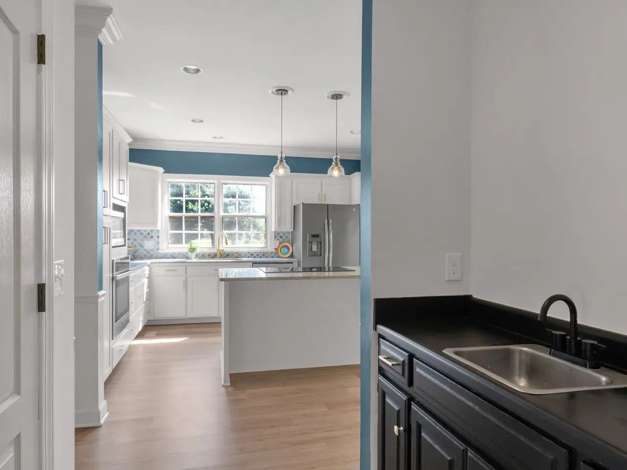 Renovated kitchen with white cabinets