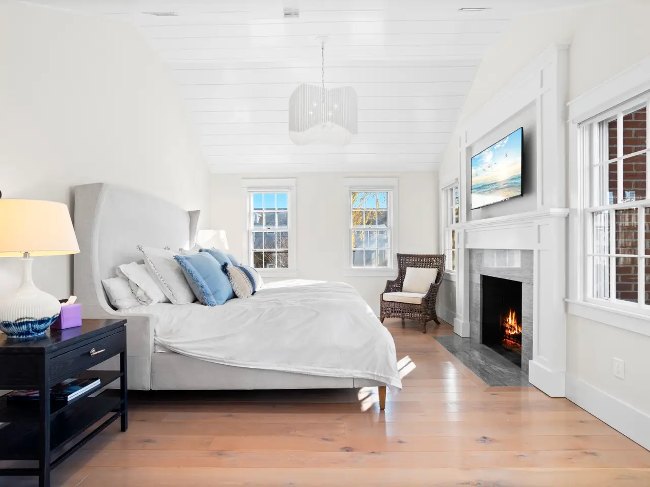 Situated in stunning Brant Point, this idyllic area boasts picturesque harbor views and is conveniently located across from the iconic White Elephant and next to downtown Nantucket. Both the main house and adjacent cottage are beautifully renovated blending classic Nantucket charm with modern design. The main house is four bedrooms with en-suite baths plus mudroom and powder room and a surprise sleeping nook with full bath. The first level features an open floor plan flooded with sunlight. A comfortable living room with ample seating orients around a fireplace and flows into a spacious dining area û creating a seamless space for entertaining. The kitchen acts as the central gathering area with bright, White Rino marble countertops, a large eat-in center island, fully equipped bar and top-of-the-line appliances. Open shelving and tiled accent walls add character and a touch of color. A deck is accessed off the kitchen with seating that flows down to a bluestone patio for additional outdoor entertaining. The "Love Shack" guest house is ideal for company overflow with a one-bedroom, beautiful ensuite bath and a quaint yet modern cottage kitchen with eat-in island and open seating area.