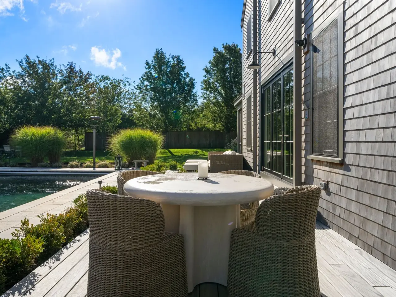 Experience modern Nantucket living at its finest in this newly renovated five bedroom, 5.5 bath home located in the desirable Austin Farm neighborhood near Hummock Pond. Thoughtfully redesigned in 2024, this home combines coastal charm with contemporary luxury and offers the perfect balance of privacy and convenience. The first floor features a bright, open layout with a custom kitchen, dining area, and spacious living room. High-end finishes, designer lighting, and hardwood flooring create an elegant yet comfortable atmosphere throughout. All flows seamlessly to the outdoor entertaining spaces. The home offers two primary suites, one on the first floor and one upstairs, each with beautifully appointed ensuite baths. Three additional guest bedrooms on the second floor provide ample space for family and visitors. A cozy den compliments the upstairs spaces, a perfect spot to unwind. Step outside to a beautifully landscaped yard with a heated pool with hot tub, pool house, and multiple lounge and dining areas. Mature plantings offer privacy while maintaining a relaxed island feel. Located just minutes from town, the beaches, Bartlett's Farm, and Miacomet Golf, this home provides convenient access to some of Nantucket's most beloved destinations.