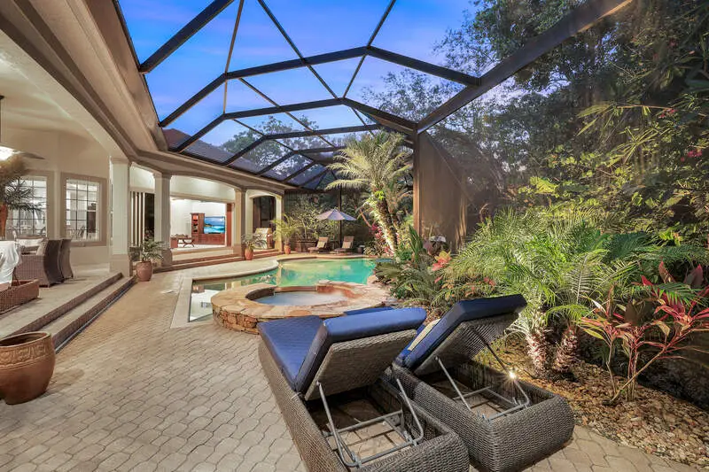 Exceptional beauty in an unmatched setting! This elegant residence gracefully blends luxury and natural beauty, in the private and highly desirable community of Collier's Reserve, just minutes from the heart of Naples and Florida's Gulf Coast beaches. From the moment you arrive, the extraordinarily beautiful street lined with towering live oak trees sets a charming and sophisticated tone, welcoming you to this expansive 4,110 sqft, 3-bedroom, 4.5-bathroom home surrounded by vibrant landscaping on a nearly half acre lot. The inviting sounds of the tiered entry fountain greets you, as you step inside to find soaring ceilings and a spacious layout with large windows overlooking the pool lanai. The elegant, formal living and dining areas are ideal for entertaining, while the heart of the home features an open floor plan where the family room, spacious kitchen, and billiards area flow seamlessly, overlooking the resort-style pool and lanai framed by tropical landscaping. A perfect layout to enjoy the indoor/outdoor lifestyle coveted by southwest Florida residents. The primary suite is a perfect retreat, complete with private lanai access and an expansive en-suite bath with private garden area. The home also features two versatile dens offering ideal spaces for a home office, library, or reading room - one overlooking the peaceful front garden with charming fountain features a large built-in bookcase. A three-car garage adds convenience to this elegant, well-appointed home. As a resident of Collier's Reserve, you'll enjoy more than just a beautiful home, you'll be part of a truly special lifestyle. This boutique, private country club community offers a rich array of amenities, including a spectacular Arthur Hills-designed golf course, tennis and pickleball courts, bocce courts, a state-of-the-art fitness center, and even the unique ability to paddle from the Cocohatchee River to the Gulf of Mexico. The club fosters a warm, welcoming atmosphere with personalized service and vibrant social connections, all located within 450 acres of protected natural beauty - recognized as the world's first Audubon International Signature Sanctuary.