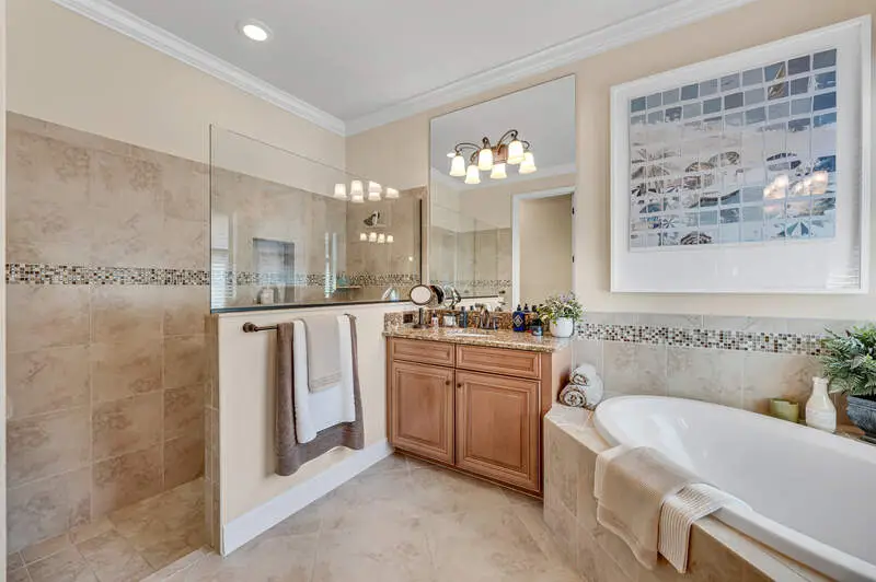 Large pool deck with spa