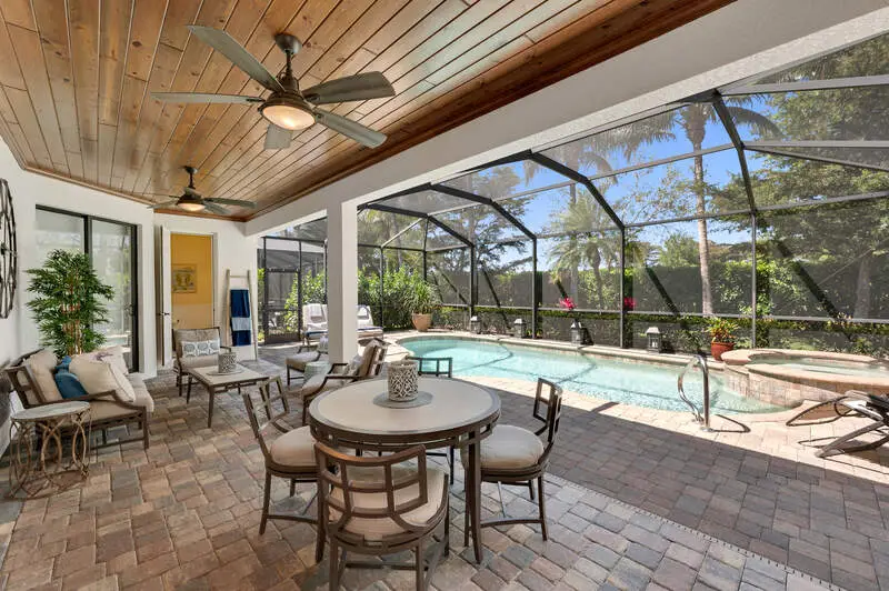 Fresh Price Drop! Lowest Priced Available Single Family Home with Golf Membership. Welcome to this exceptional Victoria model home built in 2014, located in the prestigious TPC Treviso Bay with DEEDED GOLF MEMBERSHIP & very close proximity to the Treviso Bay Club. This stunning 1,901 sq/ft residence features 2 bedrooms + Den and 2.5 bathrooms, offering both comfort and flexibility. With Western Exposure, you'll enjoy breathtaking sunsets from your luxurious outdoor retreat-perfect for entertaining. Inside, you'll find tray ceilings with crown molding throughout, granite countertops, stainless steel appliances, a wine fridge, and custom built-in cabinets in the great room and office area. The master bath features dual sinks, a separate tub, and a large walk-in shower. The expansive pool deck with a spa, outdoor kitchen with pool bath, and large palm landscaping package create an ideal setting for relaxation. Recent upgrades include a new AC and exterior paint in 2024. The garage is equipped with a mini split for added air conditioning, a built-in storage wall system, and epoxy-coated floors. Residents of Treviso Bay enjoy a wealth of amenities, including a 64,000 sq/ft luxurious main clubhouse, Villa Rilassare, resort-style lagoons, lap pools, a tennis center with pro shop, a fitness center, an aerobics and Pilates studio, and bocce ball courts. This home truly offers the perfect blend of luxury and comfort.