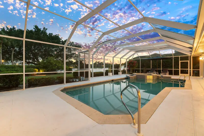 Exceptional estate situated on a rare corner lot with breathtaking lake views in the prestigious Audubon Golf & Country Club in North Naples. Offers highly sought-after SOUTHERN exposure for breathtaking sunsets and optimal sun over the pool. Originally built as one of Audubon's model homes, this beautifully designed home offers 3,245 square feet under air with 4 spacious bedrooms, 4 full bathrooms, a 3-car garage, soaring high tray ceilings, and beautiful French doors, flooding the interior with natural light. Additional highlights include a 2014 roof, hurricane shutters, new hot water heater (2021), whole-house generator (2022), 500-gallon propane tank, and dual driveways for added convenience. The open-concept layout seamlessly blends indoor and outdoor living, with the lanai offering a serene retreat with a pool, spa, ample lounging space, and stunning lake views -perfect for relaxing or entertaining. Inside, you'll find a spacious kitchen boasting white cabinetry, white countertops, and plenty of storage. The primary suite features private French doors to the lanai/pool deck, a large walk-in closet with custom built-ins, and an ensuite bathroom with dual vanities, a separate soaking tub, and spacious shower. Audubon's prime location is just 5 minutes from Mercato and world-class beaches, and the community offers a gated/guarded entrance, an 18-hole championship golf course, tennis, pickleball, a Bayside boardwalk, and a newly renovated clubhouse with dining and a second beautiful poolside club and cafe.