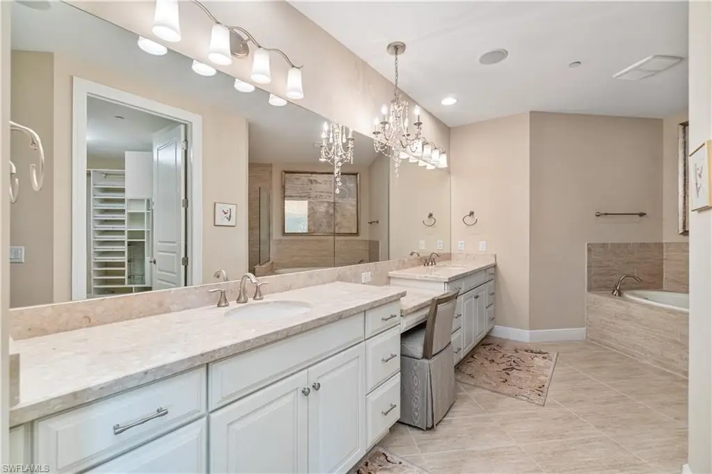 Immediate golf membership available only for Tiburon residents! This beautifully maintained residence in Marquesa Royale at The Ritz-Carlton Tibur=n offers sweeping views of the 18th hole of the golf course and sparkling lake beyond. Step off the elevator into your private foyer, where French doors open to a spacious floor plan that lives like a single-family home. The primary suite features serene views, a custom walk-in closet, dual vanities, soaking tub, and large shower. With three en-suite bedrooms, a den, powder bath, and over 700 square feet of wraparound lanai, the home blends comfort and elegance with effortless flow. The kitchen is designed for entertaining with a natural gas cooktop, stainless steel appliances, ice maker, and built-in bar with beverage coolers and wine rack. Impact-resistant windows and doors, along with remote-controlled lanai shutters, provide convenience and peace of mind. Impeccably maintained by the original owners, this move-in ready, fully furnished residence is offered in pristine condition and ready to enjoy. Memberships are immediately available, offering championship golf, tennis, fitness, spa, pools, social events, and a luxury beach shuttle to Vanderbilt Beach. All this is within minutes of world-class shopping and dining at Waterside Shops, Mercato, and more.
