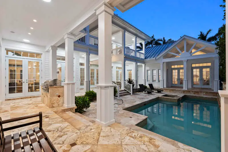 Discover an extraordinary opportunity, a Grand Family Retreat in the Heart of Naples with an unmatched location and irreplaceable corner, oversized lot! Seamlessly blending elegance with the comfort of modern living, this five bedroom plus den residence is a warm and welcoming haven, that exudes both timeless charm and contemporary luxury. From the moment you step into the impressive foyer, you'll sense the home's inviting spirit. Rich wood flooring, a coastal fireplace, and bright natural lighting all set the tone for refined yet relaxed living, perfect for both quiet family evenings and lively gatherings with friends. At the heart of the home lies an elegant family room and kitchen with its vaulted ceiling, abundance of cabinetry and integrated appliances with gas range, making family breakfasts or weekend entertaining a delight. This airy oasis invites you to linger over meals while enjoying soothing views of the private outdoor swimming pool surrounded by lush greenery. Meticulously maintained throughout, and a brand-new roof, skylights and gutters installed as of the end of 2024 as well as freshly painted. Whether you are looking to relax, work, study or more, a comfortable study/TV room offers a peaceful retreat, ideal for balancing productivity and relaxation. Additional amenities like the front porch to watch the sunsets elevate everyday living and roof top to watch the world go by. Ground floor primary suite features a fully fitted dressing room and large ensuite bathroom, a soothing sanctuary at day's end. A further generous first floor guest suite overlooks an enchanting garden courtyard. Venture upstairs to discover three further double bedrooms, all with ensuite bathrooms and balconies. This remarkable home, steps from the beach and a short walk to Third Street Shops and Dining is an invitation to create cherished memories in a setting that embodies Naples most appealing qualities: heritage, community, and effortless access to both the Gulf Coast and the city. Embrace a lifestyle that celebrates the best of Naples charm and urban sophistication-all in one exceptional family residence.
