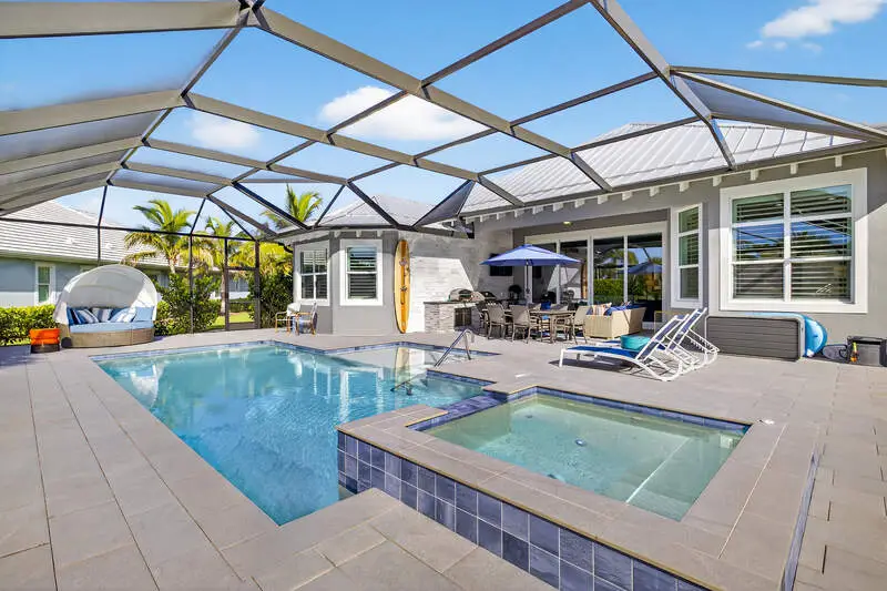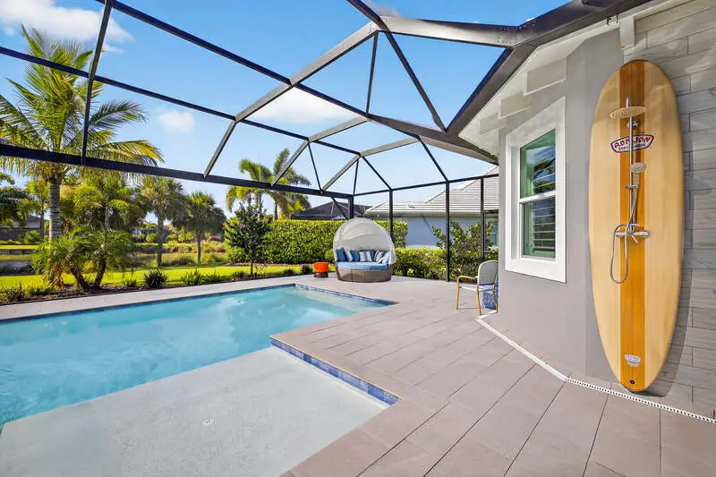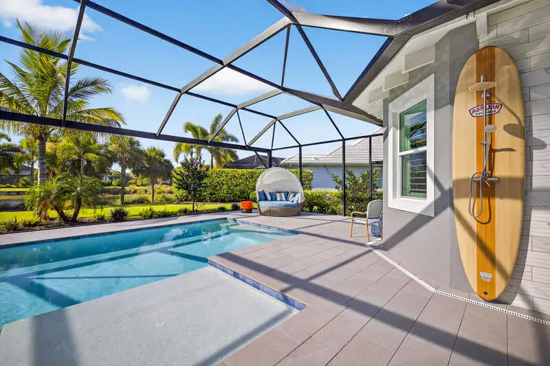 RARE OVERSIZED 1/2 ACRE LOT WITH DESIREABLE REAR SOUTHEASTERN EXPOSURE! This impeccable Minto built 'Pimento' home in The Isles of Collier Preserve is ideally situated on a premier, oversized, acre pie shaped lot featuring desirable southeast rear exposure. This generous lot provides the option for the new owner to add onto the home, if desired! This beautifully customized property is a showcase of coastal luxury, thoughtful design, and modern convenience. The light-filled open-concept floor plan features luxury vinyl plank flooring, plantation shutters, custom lighting and fans, and soaring ceilings throughout. A chef-inspired kitchen boasts quartz countertops, soft-close shaker cabinetry with built-in spice racks, 'Shelf Genie' pull-out drawers, a new refrigerator & garbage disposal (2023), and Bosch dishwasher (2025). The living area includes a custom built-in entertainment center with electric fireplace, while motorized privacy shades add function and comfort. Both bathrooms were fully remodeled in 2025, offering spa-like finishes including frameless glass showers, custom vanities with storage, and custom storage niches. Upgrades in the 3-car garage include professionally installed overhead motorized storage, epoxy floors, custom built-ins, slat walls, epoxy flooring and an A/C, mini-split. Additional upgrades include a new hot water heater (2024), and Electrolux washer and dryer on pedestals (2023). Custom closets are found throughout the home-including dual walk-ins in the primary suite. Enjoy true indoor-outdoor living on the expansive lanai featuring a brand-new saltwater pool and spa, travertine pavers, custom outdoor kitchen featuring a gas grill, beverage fridge, dramatic tile backsplash, and outdoor shower (2023) -perfect for entertaining or relaxing in privacy. Professionally installed landscape & lighting includes 30 mature palm trees, calusia privacy hedging, custom up-lighting, and refreshed garden beds front and back (2025). Additional peace of mind comes with a metal roof, impact-resistant windows and doors, retractable screen front entry, and a freshly painted interior and exterior. Isles of Collier Preserve, residents enjoy resort-style amenities including a clubhouse, fitness center, resort and lap pools, 6 tennis courts, 14 pickleball courts, kayaking, scenic nature trails, and the waterfront Overlook Bar & Grill. Just minutes to downtown Naples, 5th Avenue, and white sand beaches. This move-in ready home is a rare opportunity to enjoy luxury living in one of Naples' most desirable communities.