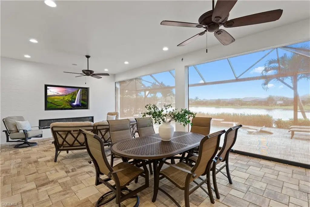 LIVE A VACATION LIFESTYLE IN ESPLANADE! FULL GOLF MEMBERSHIP INCLUDED! Step into this highly upgraded "Palazzio" offering 3 spacious bedrooms, den, 3 full bathrooms, and 3,116 sq ft under air. With oversized rooms throughout, the open great room floorplan creates a seamless flow for entertaining and comfortable living. Two sets of pocketing sliding glass doors invite you to the expanded lanai, where you can enjoy picturesque wide lake views and SOUTHERN EXPOSURE, making this outdoor space an absolute retreat. The private pool area boasts a gas-heated saltwater pool with a raised spa and sunshelf. For those who love outdoor living, the lanai is equipped with an outdoor kitchen, feature wall with an LED fireplace & TV, all enclosed by electric motorized roll-down hurricane screens, ensuring year-round enjoyment. Inside, the home features rich travertine marble tile throughout the entire home. The expanded kitchen has been fully updated with white raised-panel cabinetry with contrasting wood tone island, Cambria quartz countertops, a stylish tile backsplash, and top-of-the-line GE Cafe appliances, including wall oven, convection microwave, wine cooler, and GAS cooktop. Additional luxury finishes include: HURRICANE IMPACT GLASS WINDOWS/DOORS; impact glass double front doors with matching sidelights; tandem style 3 car garage with built-in cabinetry & finished garage floor; great room built-in with custom cabinets, wall detail, and wall mounted TV; expanded primary & front guest bedrooms with bay windows; special order lights/chandeliers; finished closet cabinets throughout; crown molding & plantation shutters throughout; recessed lights in every room; freshly painted interior; spacious Laundry Room with cabinetry; tankless GAS hot water heater; 8' solid core doors/10' ceilings; extensive landscaping with landscaping lighting; and more! Esplanade Golf & Country Club of North Naples offers a true "Lifestyle Community" with world-class amenities, including a resort pool with cabanas and the popular "Bahama Bar" tennis, pickleball, bocce, a 14-mile network of bike/walking trails, and an 18-hole private golf course. The impressive 15,000 Sq Ft clubhouse features a restaurant, bar, wine-tasting room, wine lockers, and a Starbucks-style cafe. Best of all, the property's landscaping, irrigation, golf membership, and all community amenities are covered under a quarterly fee of just $3,434ùno additional fees or memberships required! Don't miss your opportunity to own this exceptional home in one of Naples' most sought-after communities. Schedule your tour of this stunning home and Esplanade Golf & Country Club today!