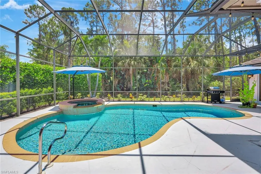 Spacious Elegance in Sought-After Wilshire Lakes Welcome to this beautifully appointed residence nestled in the desirable, gated community of Wilshire Lakes - just minutes from Naples' world-renowned beaches, upscale shopping, and premier dining. Boasting nearly 3,000 square feet of living space, this 5-bedroom, 3-bath home offers an open-concept floor plan that seamlessly blends comfort and functionality. Soaring ceilings and expansive sliding glass doors flood the interior with natural light and invite you to the covered lanai - complete with a sparkling pool and spa - perfect for relaxing or entertaining. The thoughtfully designed layout includes a convenient pool bath, ideal for effortless indoor-outdoor living. Set on a lush, private lot with a tranquil backyard, this home features a spacious three-car garage and a versatile split-bedroom design to suit any lifestyle. Enjoy the serenity of a quiet, tree-lined street while still being connected to everything that makes North Naples so special. A true bonus is the easy bike or walking access to North Collier Regional Park - offering a fitness center, sports fields, fitness classes, an exciting water park, and the beloved children's museum. This is your opportunity to experience the best of Southwest Florida living in a community known for its natural beauty, strong sense of neighborhood, and unbeatable location.