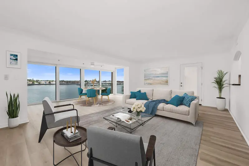 A most superior viewscape, deep & wide across Moorings Bay plus a look at the Gulf from the primary bedroom ... a three bedroom in the preferred 02 stack with east, south & west orientation ... this condo has just been refreshed from the flooring to the ceiling fans ... direct access to the beach is right across Gulf Shore Blvd ... a very short walk takes you to the unique shops, galleries & restaurants on the waterfront at Villages on Venetian Bay ... Venetian Cove Club is a gem ... boat slips & kayak storage are available to lease ... lovely bayfront pool ... grilling area ... sundeck on the bay ... Park Shore Beach Park membership is also available.