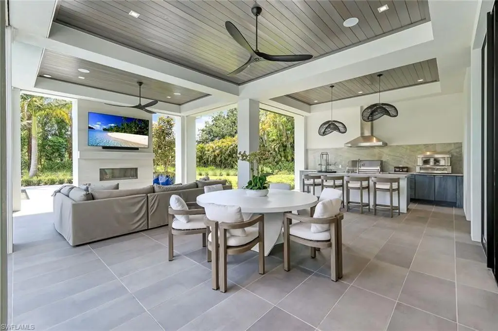A showcase of modern elegance, this custom two-story residence was thoughtfully crafted with architectural excellence by Boyott Design. Nestled in prestigious Pine Ridge, the home embodies exceptional craftsmanship with premium finishes for a lifestyle of sophisticated comfort. All cabinetry and wood accents customized by Ruffino Cabinetry. Spectacular chef’s kitchen, accompanied by a chic full-service Butler’s pantry. Both offering upscale appliances by Miele, Thermador, Bosch and BlueStar. Well-appointed bar area with 184 bottle dual wine coolers. Additional office wet bar, plus guest station on the second floor. All bedrooms are ensuite with walk in closets. The elegant first floor primary bedroom is private with access to a spacious study, porte-cochere entry with welcome station, and his & her opulent closets. Expansive primary bathroom offers dual sides of amenities providing privacy, plus a digital Kohler Rain Shower/Body Spray System for personalization. First floor guest suite is equipped with a steam shower. A dramatic glass staircase leads to more open living/recreation space with theatre quality sound system. Large sliders open to a covered cedar ceiling balcony with beautiful scenic views of the grounds and pool. The second floor VIP Suite offers balcony access, vanity, walk-in closet and luxurious shower. The picturesque, main covered lanai areas include outdoor kitchen, bar, Alfresco grille and pizza oven, dining and two spacious outdoor living areas, linear fireplace which all may be enclosed under automated screens. Outdoor living areas give way to a sprawling heated saltwater pool with soothing scuppers of water flowing from a large linear firepit, sun shelf and spa. Property is elegantly landscaped with the bonus of mango, lime & lemon trees. The home is managed by a Control4 Home Automation System for lighting, security, music, window shades and audio/visual. Additional features include hurricane impact-resistant doors & windows by ES Windows. You'll enjoy superior protection and sound attenuation. Soaring 12-foot sliding doors seamlessly connect indoor and outdoor spaces, while wide plank wood flooring flows beautifully throughout main living areas. Specially designed drop celings to cover air vents. Enjoy the convenience of an elevator, a whole-home reverse osmosis water system, and a robust whole-home generator for uninterrupted power. Even the garage is a haven with full air-conditioning and custom storage solutions. For enhanced peace of mind, this property offers a comprehensive security solution including outdoor surveillance cameras, a fully fenced perimeter, and secure Viking entry gates. This beautiful Pine Ridge Estates property is close to beaches, fine dining, upscale shopping, and the renowned Artis—Naples. This one-of-a-kind estate offers luxury living at its finest.