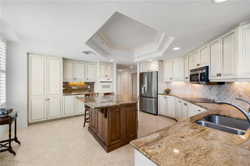A premier end-unit overlooking the Gulf, this west-facing residence offers nearly 3,000 square feet of beautifully refreshed living space where coastal elegance meets effortless comfort. Recently painted throughout and thoughtfully updated to mirror the serene beauty of its surroundings, every detail complements the sweeping water and sunset views that define life here. Expansive walls of glass draw your eye to the horizon, where boats drift toward the Gulf and the evening sky fills the home with soft, golden light. The open great-room design flows seamlessly into the dining and kitchen areas, creating an ideal setting for both entertaining and relaxation. The primary suite serves as a private sanctuary, framed by panoramic Gulf and bay views with direct access to the lanai for morning coffee or quiet evenings overlooking the water. A private den and two en suite guest rooms provide exceptional comfort for family and guests. Beyond the residence, the community has undergone a stunning transformation, including redesigned lobby spaces, modernized elevators and hallways, and the peace of mind that comes with exceptionally healthy reserves. For those seeking to elevate their coastal lifestyle, optional membership to the award-winning Pelican Isle Yacht Club offers access to a world of refined leisure, including a private beach shuttle, kayaks, paddleboards, tennis, pickleball, fitness, fine dining, social events, and a state-of-the-art marina. This is Naples waterfront living at its finestùtimeless, tranquil, and beautifully renewed.