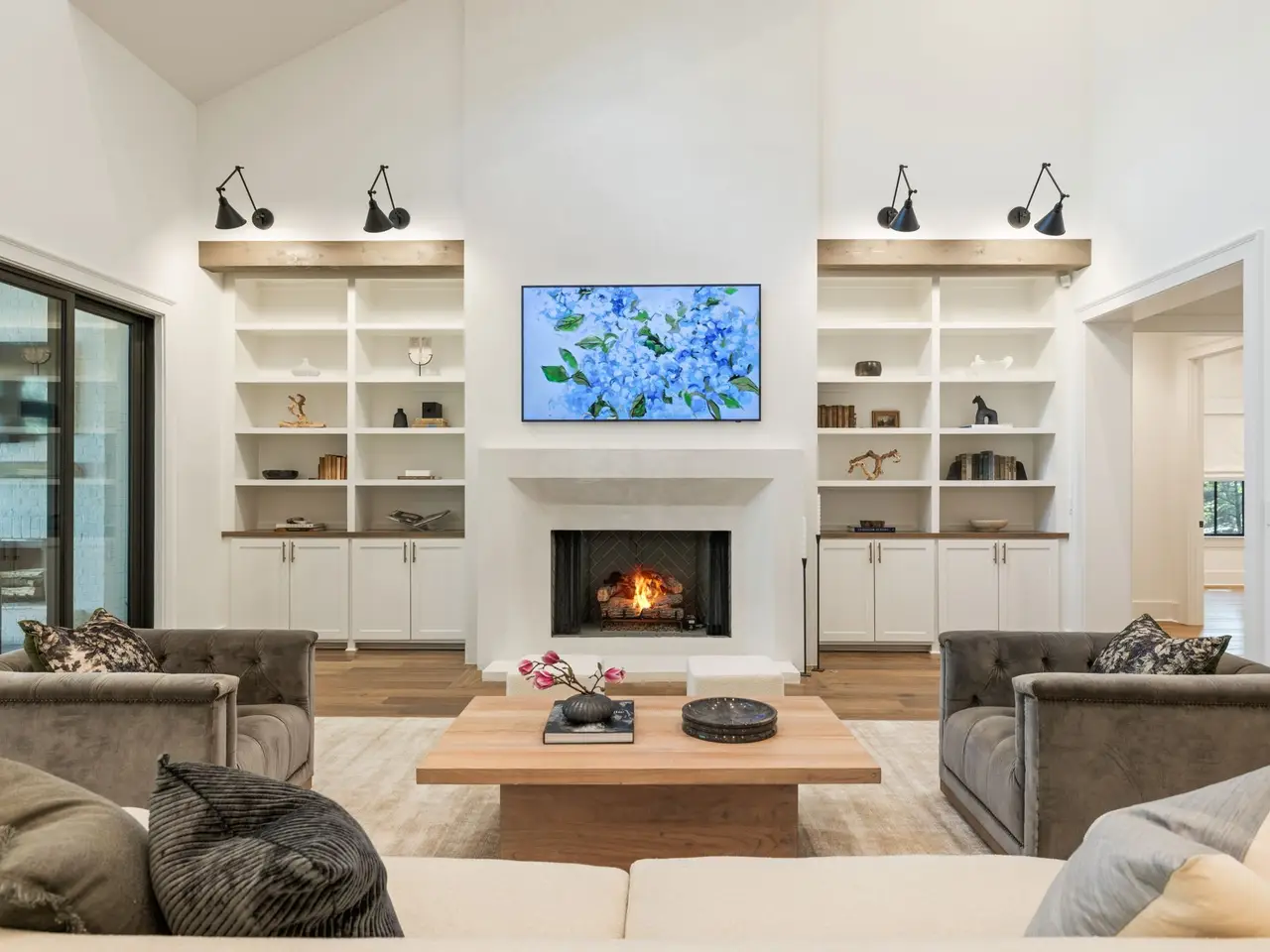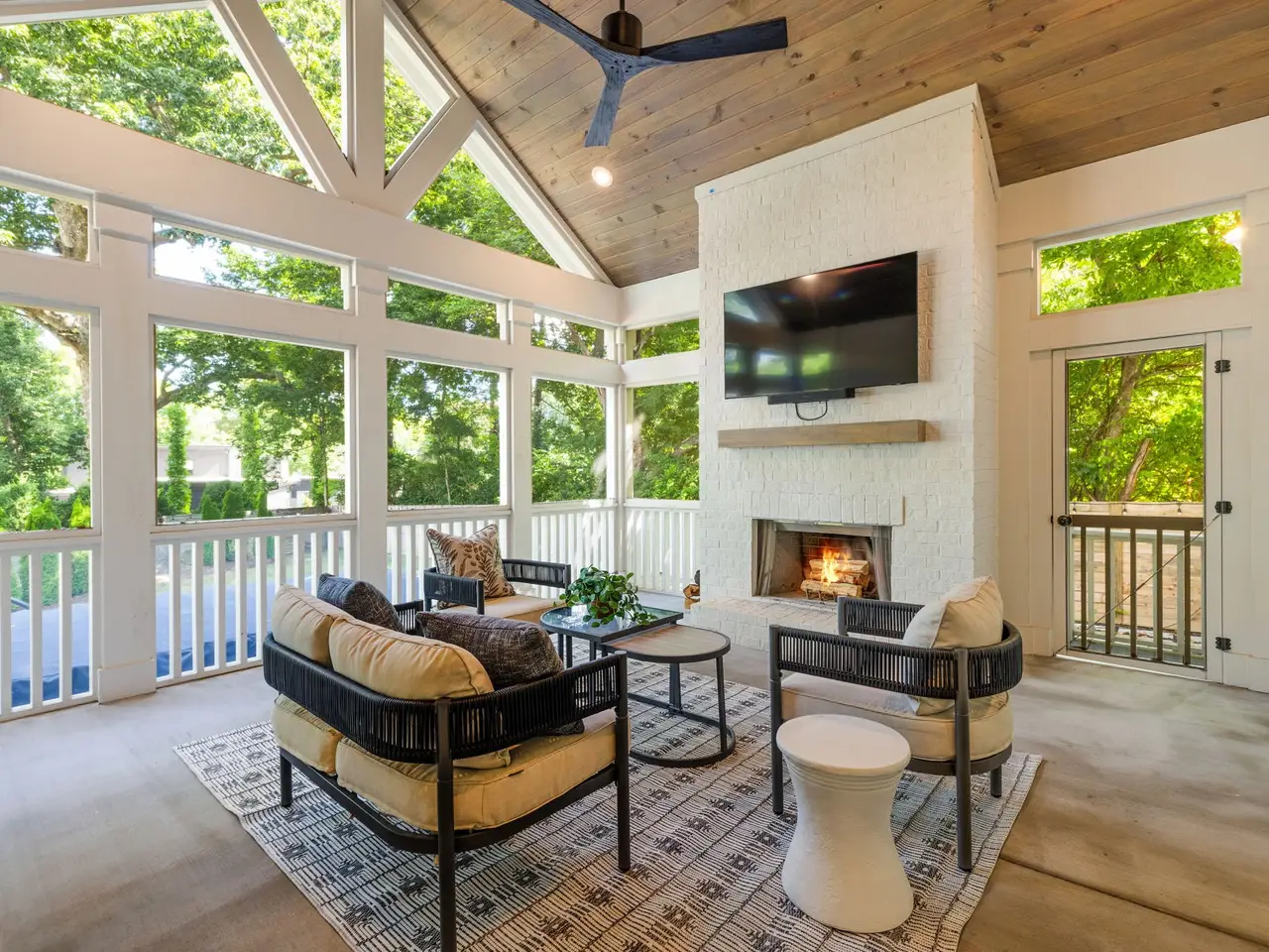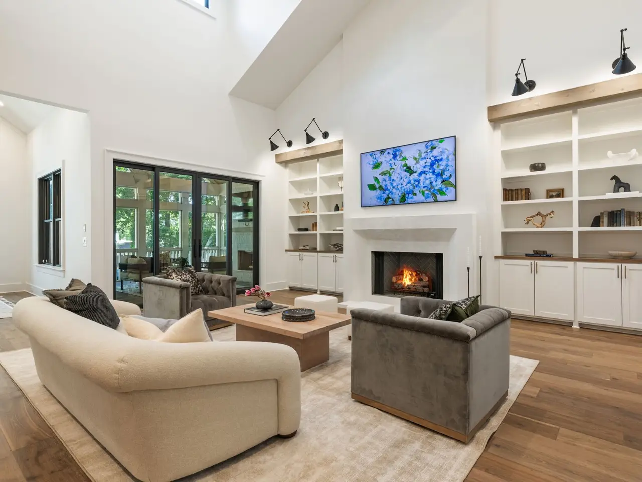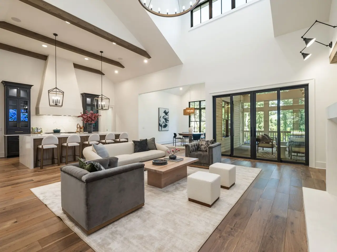 Luxury living meets unbeatable location in this stunning home, just a short drive from the heart of downtown Nashville. Beyond the double glass-paneled front doors, you're welcomed into an elegant entry foyer that flows seamlessly into the formal dining room, complete with accent walls and a show-stopping chandelier. A private vaulted office with custom cabinetry provides the perfect work-from-home retreat, while the open-concept floor plan centers around a soaring two-story great room. Here, custom built-in cabinets, open shelving, and a gas fireplace create a warm yet sophisticated gathering space. The gourmet kitchen is a chef's dream, showcasing a waterfall-edge island, wooden ceiling beams, Wolf appliances, a wet bar, beverage center, and an oversized pantry with abundant shelving and room for a second refrigerator. A light-filled breakfast room connects the living and dining areas, making entertaining effortless. The main-level primary suite is a true retreat with high ceilings, designer accent walls, double vanities, a soaking tub, a floor-to-ceiling tile shower with rain head and built-in bench, and a spacious walk-in closet with custom shelving that conveniently connects to the laundry room. Two additional bedrooms and a full bath complete the main level. Upstairs, you'll find a second laundry room, a generous bonus room with its own wet bar and beverage center, three well appointed bedrooms with en suite baths and walk-in-closets, plus an additional entertaining space that could serve as a media room, playroom, second office, or even an extra bedroom--offering endless possibilities to suit your needs. Step outside to the screened back porch overlooking a private, fenced yard with concrete paver patio--ideal for both relaxation and entertaining. A gated driveway and three-car garage complete this incredible property.