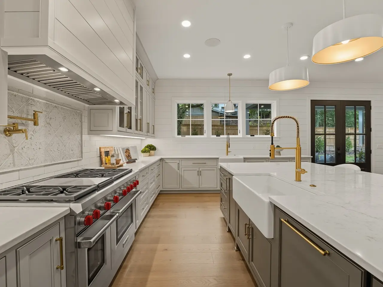 Every inch of this remarkable home reflects a deep commitment to quality, craftsmanship & timeless design. Built on a steel-reinforced poured concrete foundation w/brick construction, this residence combines unwavering strength w/exquisite architectural details. Classic bead board ceilings on front & back porches along w/Coppersmith gas lanterns set the tone for a home that's as beautiful as it is enduring. Upon entering, you are greeted by the soothing sounds of your personal Sonos amp system w/18 ceiling speakers & individual fader controls smartly placed throughout common living areas. Kitchen is a chef's dream w/Calacatta Miraggio Cove Quartz countertops, 48" Wolf gas range w/double ovens, Sub-Zero refrigerator &freezer columns, Bosch Benchmark dishwasher & Scotsman nugget ice machine. A large walk-in pantry w/ prep space completes the culinary experience. Great room centers on a dramatic wood-burning stone fireplace complemented by a custom TV console w/shelving & white oak accents. Separate spacious dining room is complete w/bar area serving as both a visual centerpiece & an entertainer's dream. It features black honed countertops, custom built-ins for glass & bottle storage, wine frig & ice maker & brass rail/glass shelving set against antiqued smoked mirrors. Inviting Primary suite is a retreat to behold w/a vaulted wood plank ceiling, Taj Mahal quartz surfaces, Brizo Litze luxe gold fixtures, double vanities & a graciously-sized soaking tub. Walk-in closet offers an expansive 20-drawer center island & specialty shelving like angled shoe racks. Main-level laundry offers extensive cabinetry w/over 160 cubic feet of storage--ideal for linens, luggage, and seasonal needs. Upper floor boasts a central gathering room from which 4 bedrooms rest, each w/ their own private bathrooms & walk-in closets. Another full laundry room is found here w/front-facing window that allows sunlight to wash across the patterned floor tile.