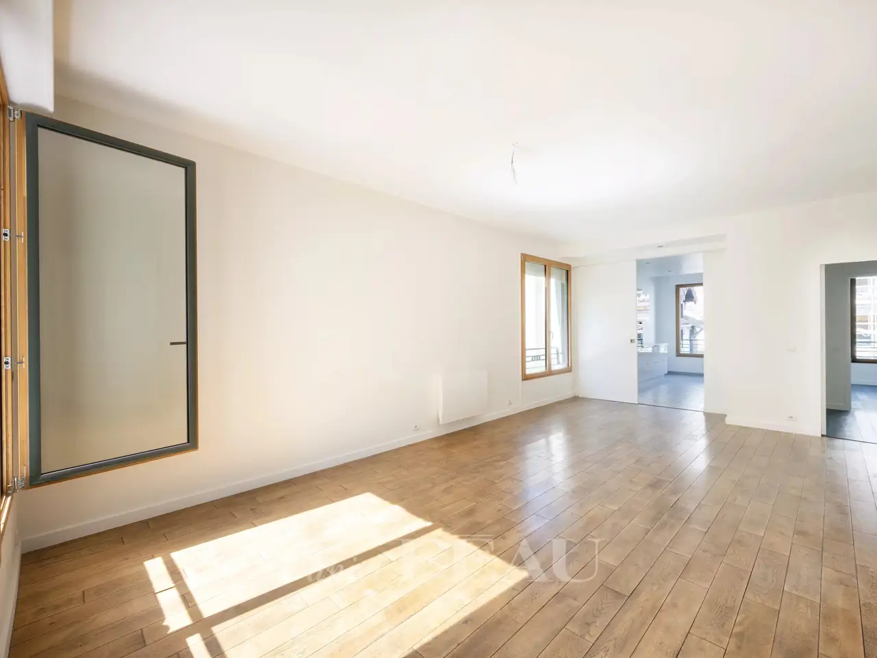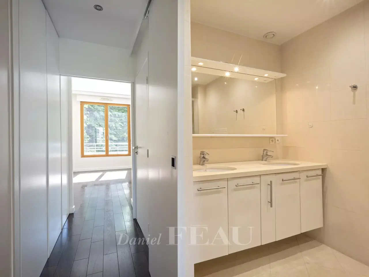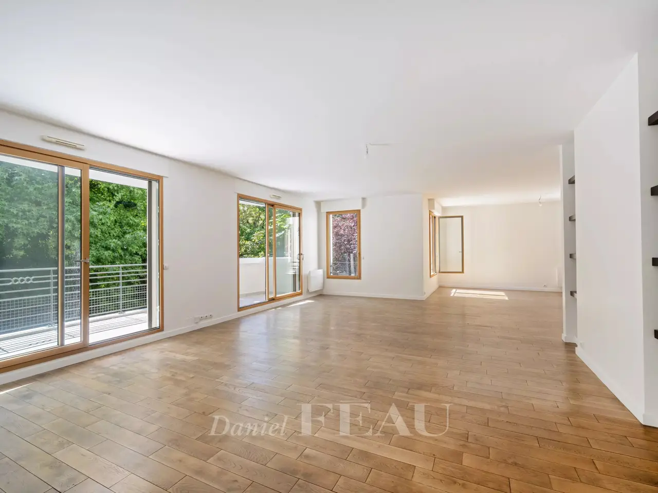 Saint James neighbourhood. This bright and peaceful 189 sqm dual-aspect apartment is on the 1st floor of a well-maintained and refaced co-ownership dating from 2005. It includes a 78 sqm double living/reception room opening onto an east-facing terrace, a kitchen with dining facilities, a master suite with a shower room/wc, a dressing room and a study, two further bedrooms, a shower room and a separate wc. With a parking space and a cellar. In a convenient location near the woods, the shops and transport networks. A second parking space may be acquired at extra cost.