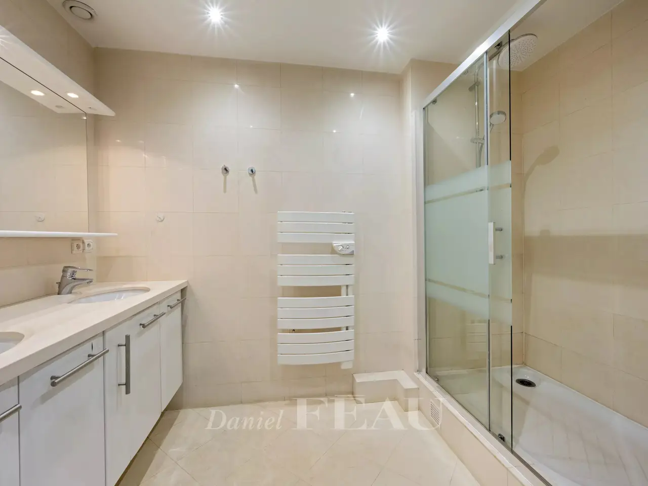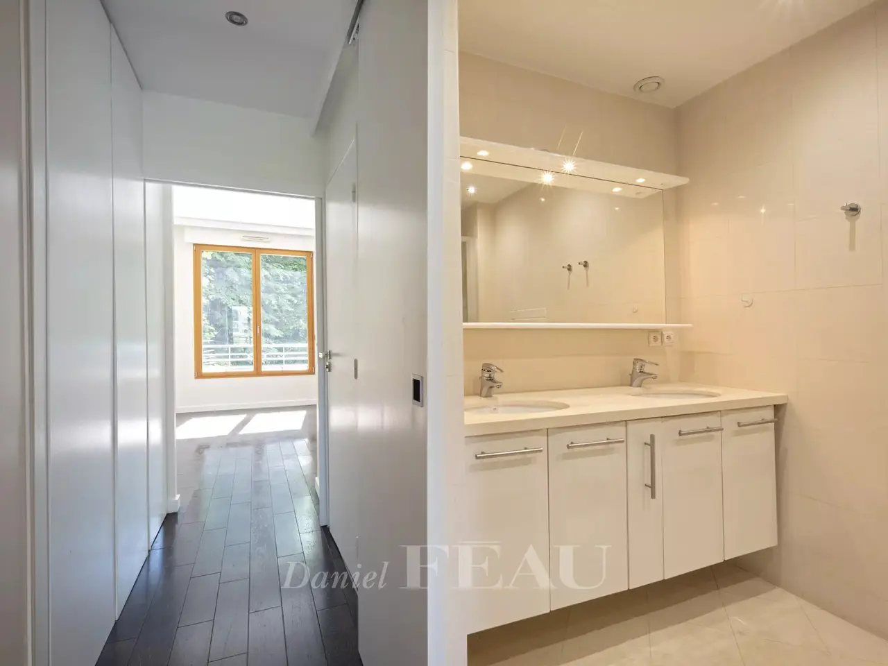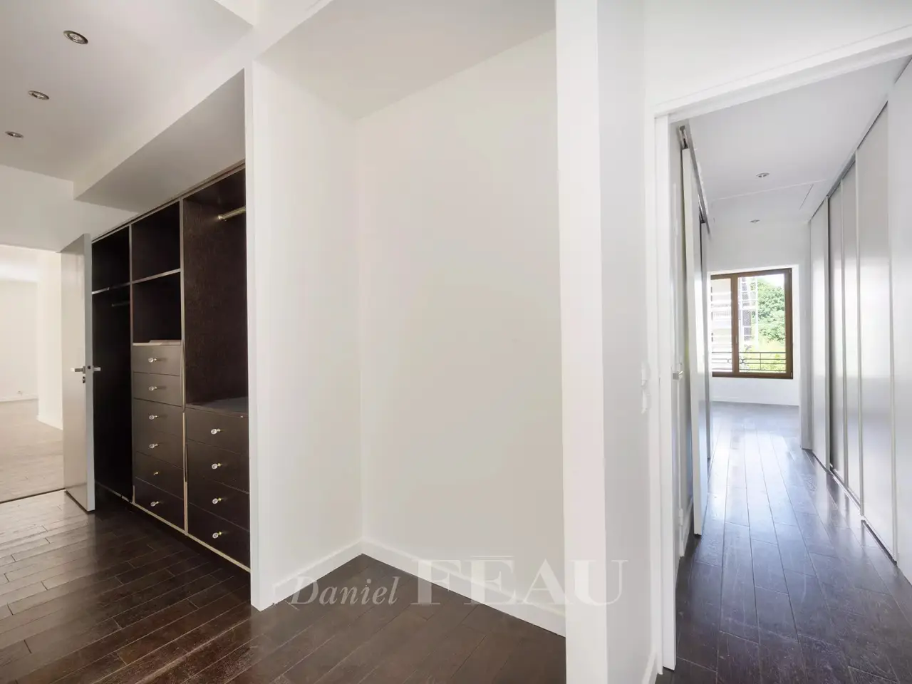 Saint James neighbourhood. This bright and peaceful 189 sqm dual-aspect apartment is on the 1st floor of a well-maintained and refaced co-ownership dating from 2005. It includes a 78 sqm double living/reception room opening onto an east-facing terrace, a kitchen with dining facilities, a master suite with a shower room/wc, a dressing room and a study, two further bedrooms, a shower room and a separate wc. With a parking space and a cellar. In a convenient location near the woods, the shops and transport networks. A second parking space may be acquired at extra cost.