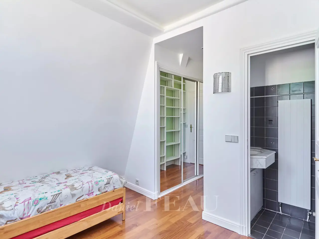 Bagatelle neighbourhood. This bright and peaceful apartment offering 137 sqm of floor space is on the 3rd floor of a superb listed early 20th century building. In very good condition, it includes a spacious living/reception room, a fitted and equipped semi open-plan kitchen, a guest wc, four bedrooms, a bathroom/wc and two shower rooms. The apartment is dual-aspect and enjoys views of the co-ownership's gardens and the Bois de Boulogne. With a parking space and a cellar.
