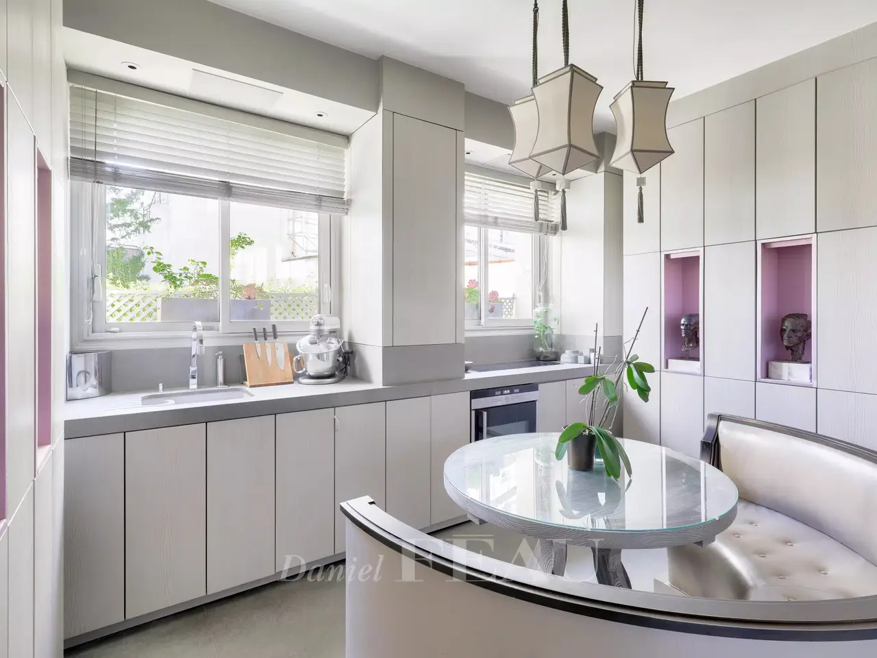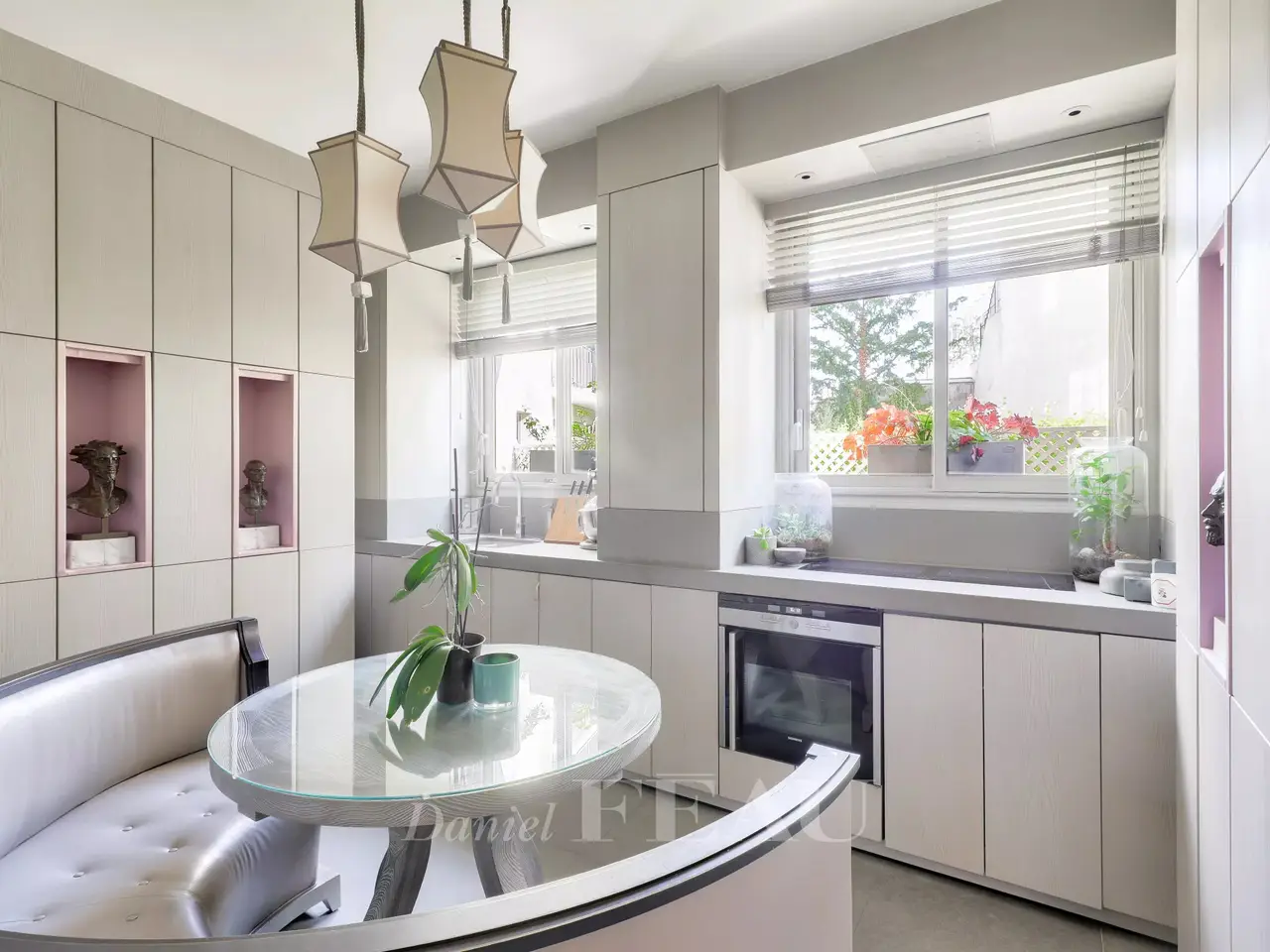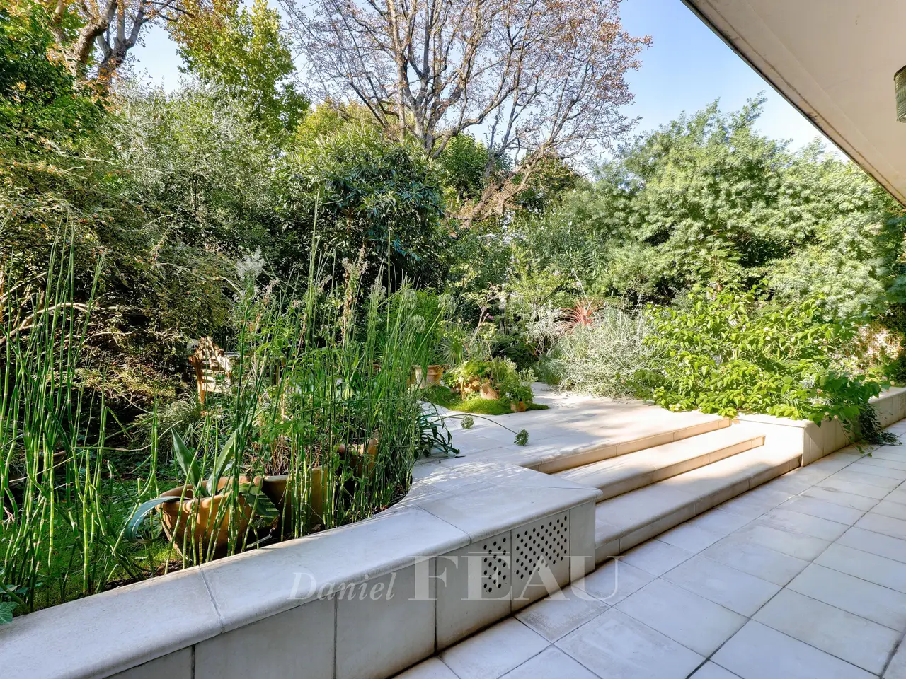 This exceptional 140 sqm apartment opening onto a landscaped 315 sqm garden hidden from view is in a fine mid 20th century residence located in Neuilly’s residential Chateau neighbourhood. Beautifully appointed and in mint condition, it includes a spacious living/reception room and dining room bathed in sunshine, a separate kitchen, two bedrooms accessing the garden, a shower room, two dressing rooms and a wc, and a third bedroom with a bathroom, wc and two further dressing rooms. With a parking space and two cellars. A maid’s bedroom and a lock-up garage are available at extra cost. Pasteur catchment area.