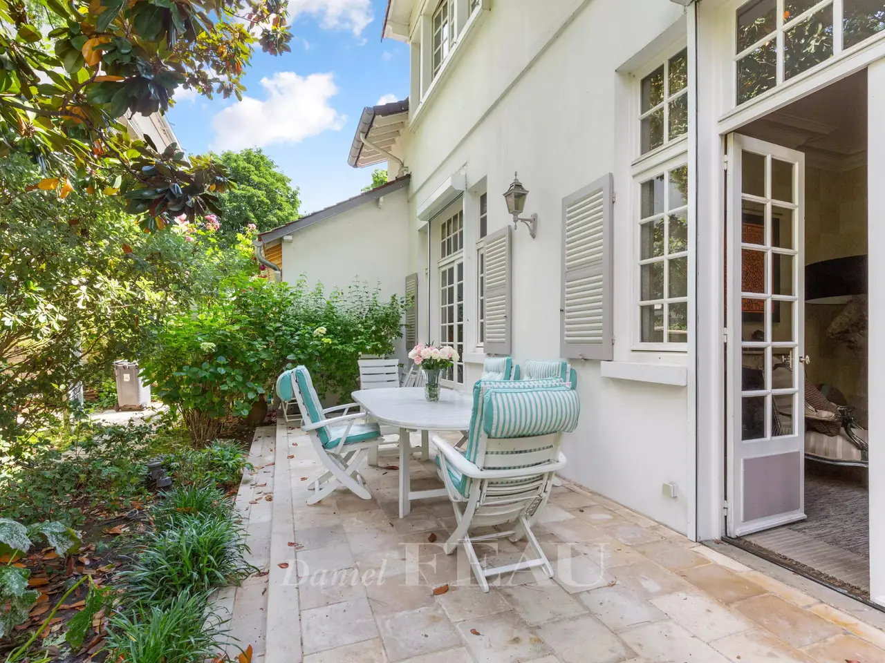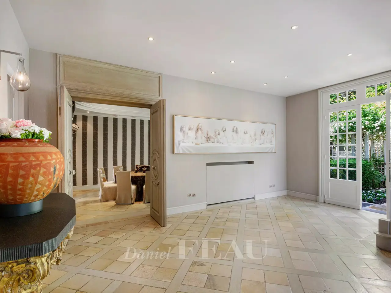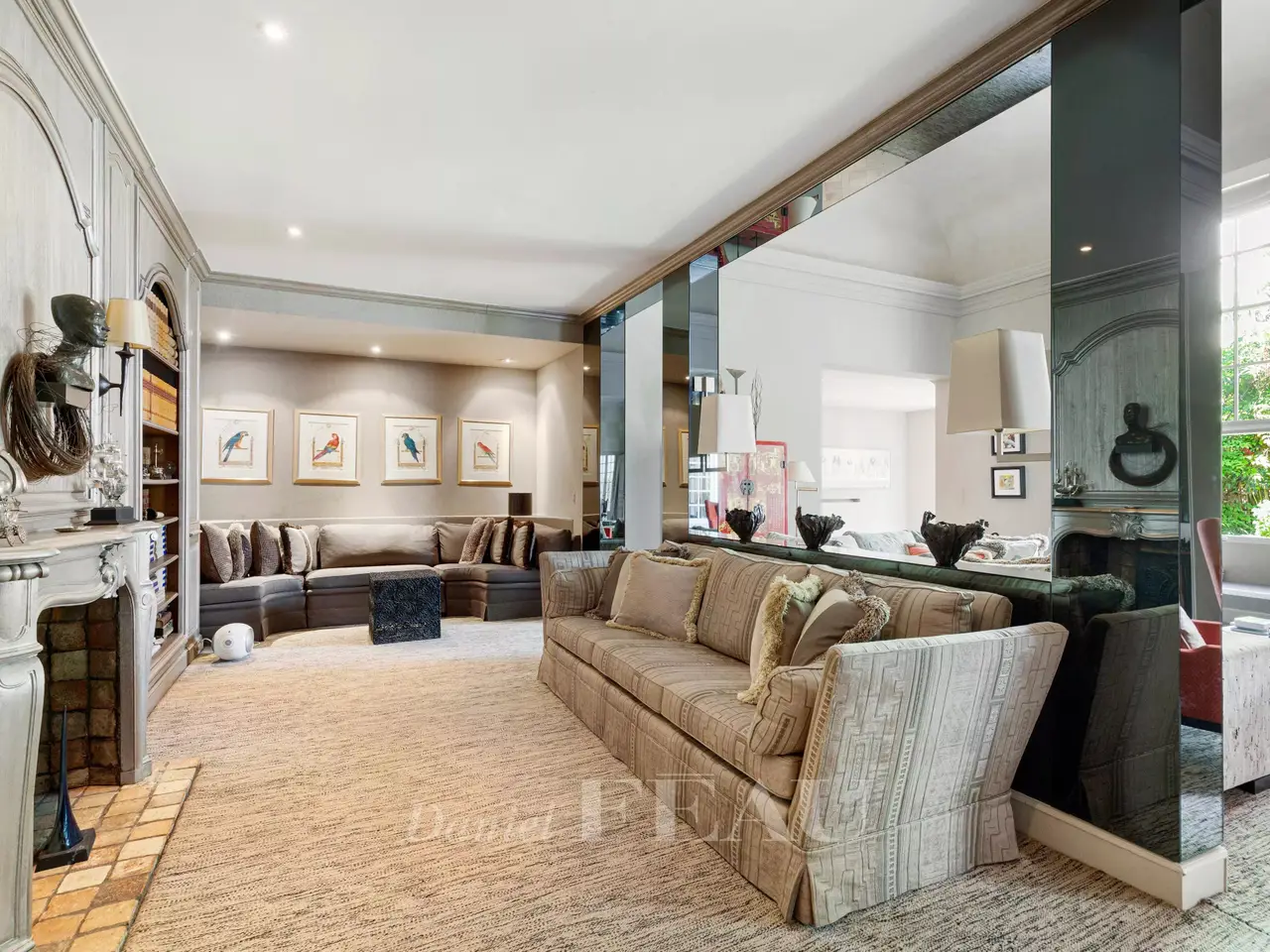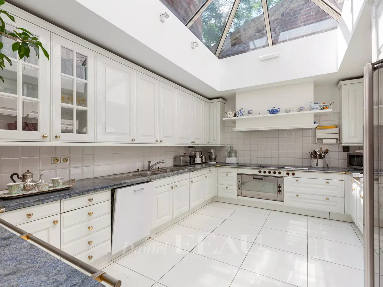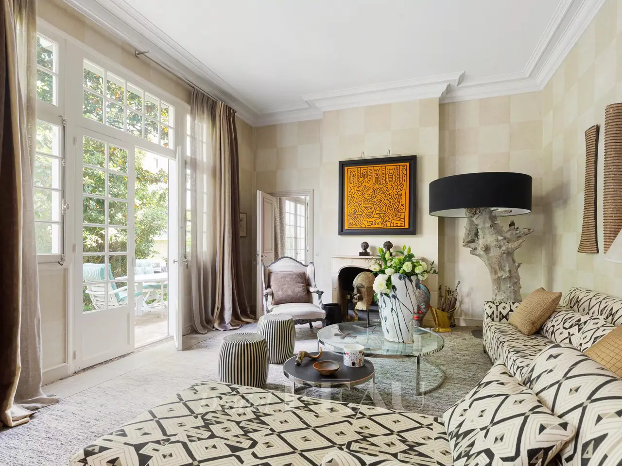 This superb property hidden from view in a secure co-ownership with a caretaker benefits from an entirely enclosed near 500 sqm garden. About 500 sqm of living space includes an entrance hall with a cloakroom and a guest toilet, two adjoining living/reception rooms featuring 6-metre high ceilings and fireplaces, a dining room, a kitchen with a skylight and a dining area, and an air-conditioned master suite with a bathroom and dressing rooms. Accessed from both sides of the ground floor, the upper floor comprises five bedrooms and three bathrooms. A further bedroom featuring exposed beams is on the top floor. The basement comprises a utility room, technical premises and storage rooms. A workshop is adjacent to the main house. With two basement parking spaces, and outdoor parking space for a further two cars. An exceptional property on the north-western edge of the capital.
