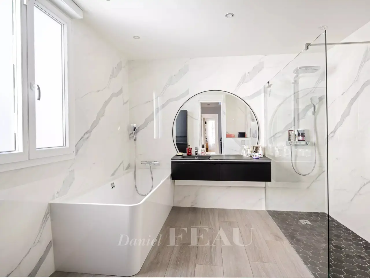 Argenson neighbourhood. This entirely renovated mid 1920’s property offers 283 sqm of air-conditioned living space on four floors benefiting from lift access. The ground floor includes a boiler room, a patio, a laundry room, a guest wc and a garage with motorized doors and two battery chargers for electric vehicles. Upstairs are a spacious dual-aspect living/reception room with a dining room, and a fully equipped kitchen opening onto a terrace. A master bedroom, a study, a dressing room and a bathroom with a wc are on the second floor, and three further bedrooms and two bathrooms with wc are on the top floor. The property has undergone an elegant renovation and has recently been refaced. Pasteur catchment area.