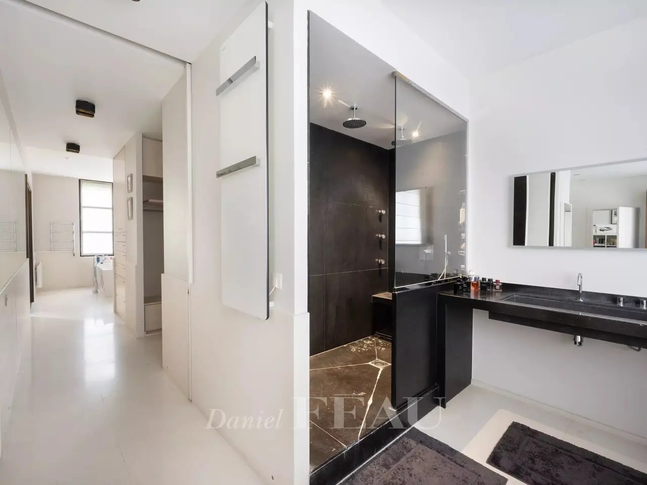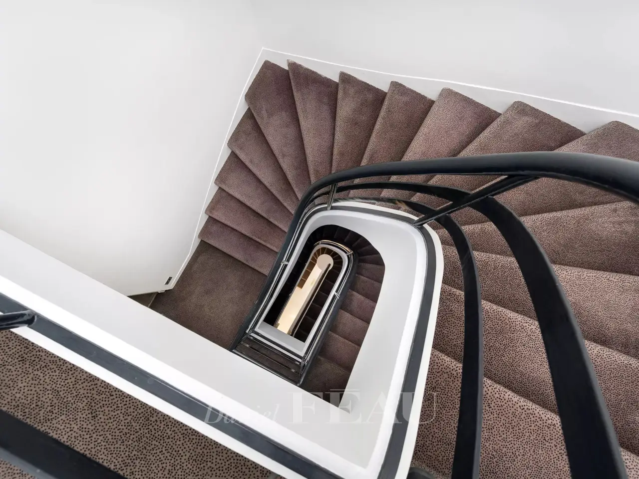 This magnificent 1930’s private mansion located in a private street benefits from a near 250 sqm garden. It includes garden-level living/reception rooms and a kitchen, with a garden-level studio apartment. A master suite opening onto a terrace and with a bathroom, two dressing rooms and a study is upstairs. The second floor comprises two bedrooms each with a bathroom, and a two-room apartment overlooking the garden. The top floor is fitted as a self-contained apartment and includes a living room, a kitchen, two bedrooms and two bathrooms. On a basement with a home cinema, a wine cellar and a utility room. Air-conditioning. With an indoor parking space and three spaces in front of the property.
